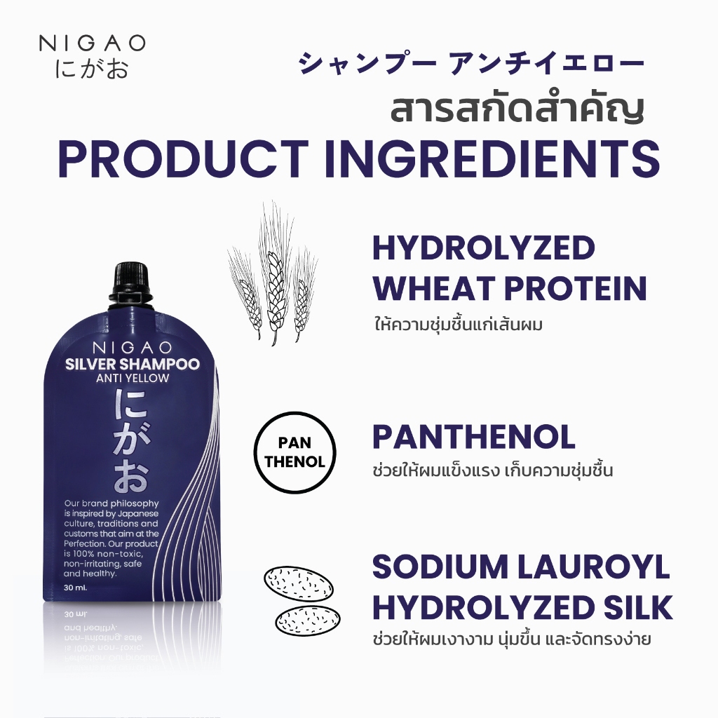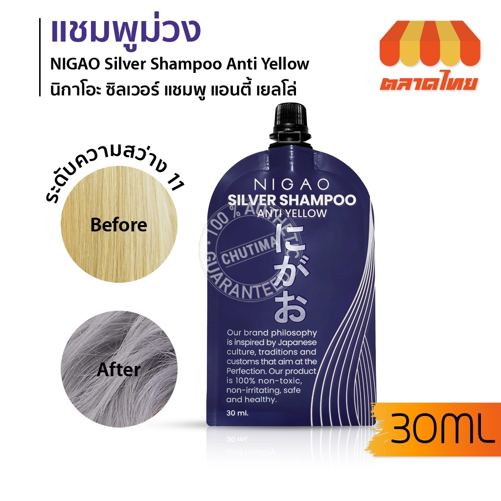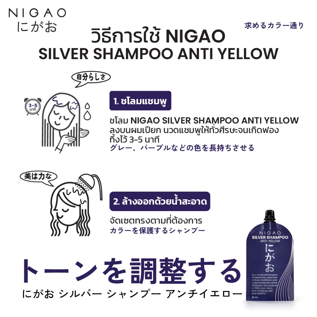 แบบซอง แชมพูม่วง นิกาโอะ ซิลเวอร์ แชมพู แอนตี้เยลโล่ 30 มล. NIGAO Silver Shampoo Anti Yellow 30 ml.