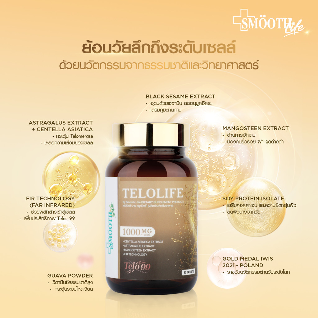 [แพ็ค 2] Smooth Life Telolife 60 เม็ด ต่อต้านอนุมูลอิสระ ชะลอความเสื่อมของร่างกาย บำรุงผิว กระจ่างใส