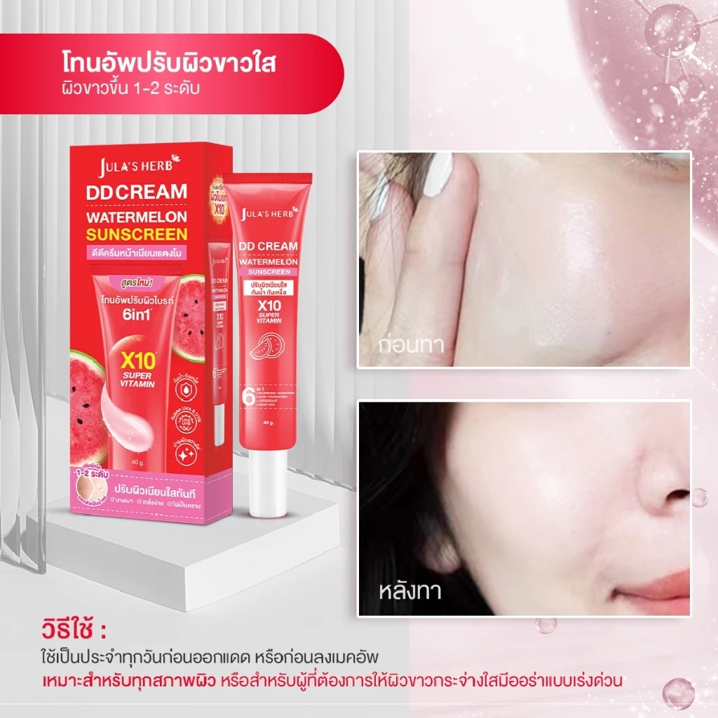 (1 หลอด) Jula's Herb จุฬาเฮิร์บ ดีดีครีมกันแดดแตงโม เนียนใส อัพผิวไบร์ท (40 กรัม)