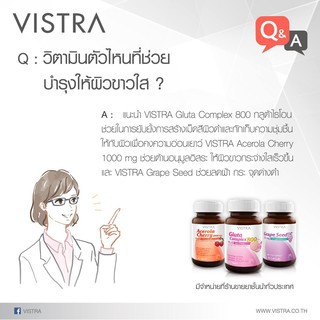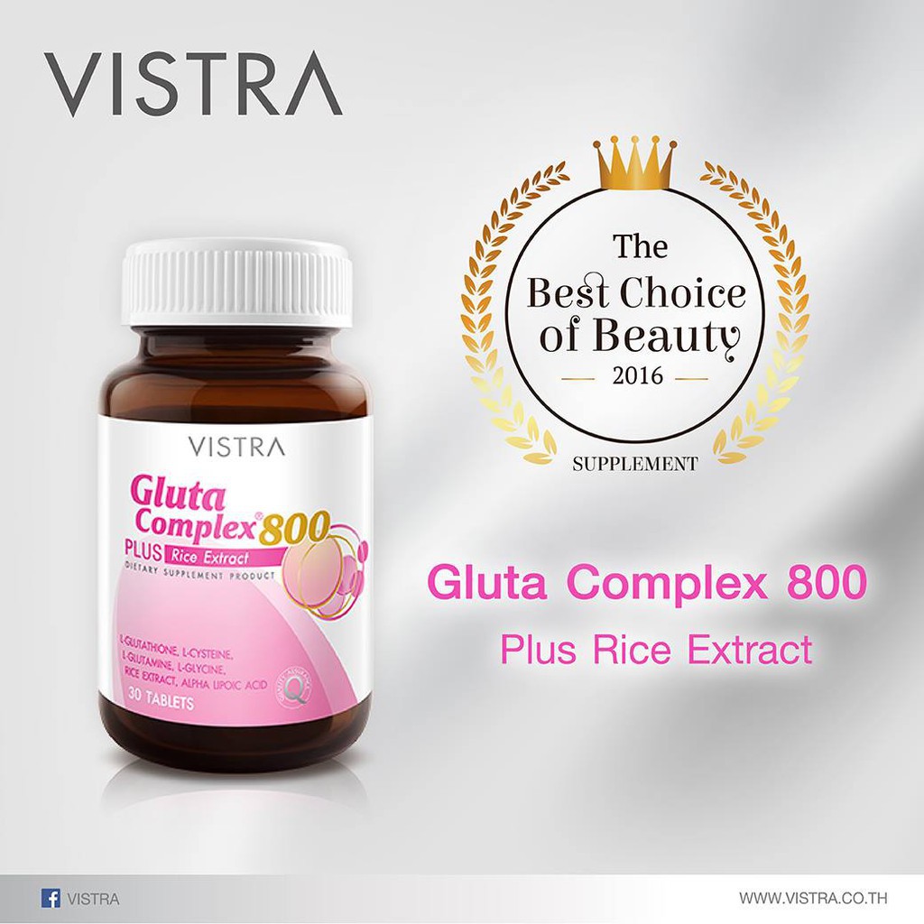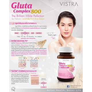 Vistra Gluta Complex กลูต้า บำรุงผิว ผิวขาว 800mg ขนาด14/30เม็ดช่วยฟื้นฟูผิวที่ไหม้แดด