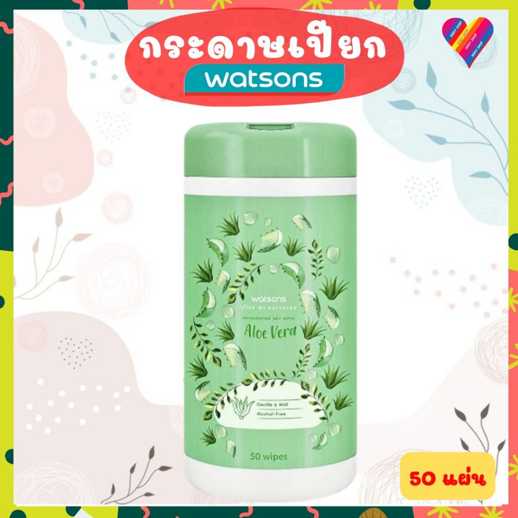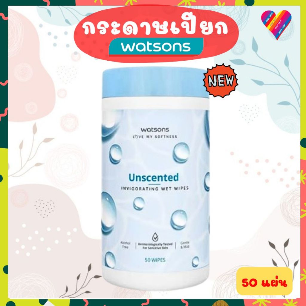 ลดๆ🌸 กระดาษเปียก WATSONS กระป๋อง 50 แผ่น กระดาษเปียกวัตสัน ทิชชู่เปียก กระดาษทิชชู่ wet wipes