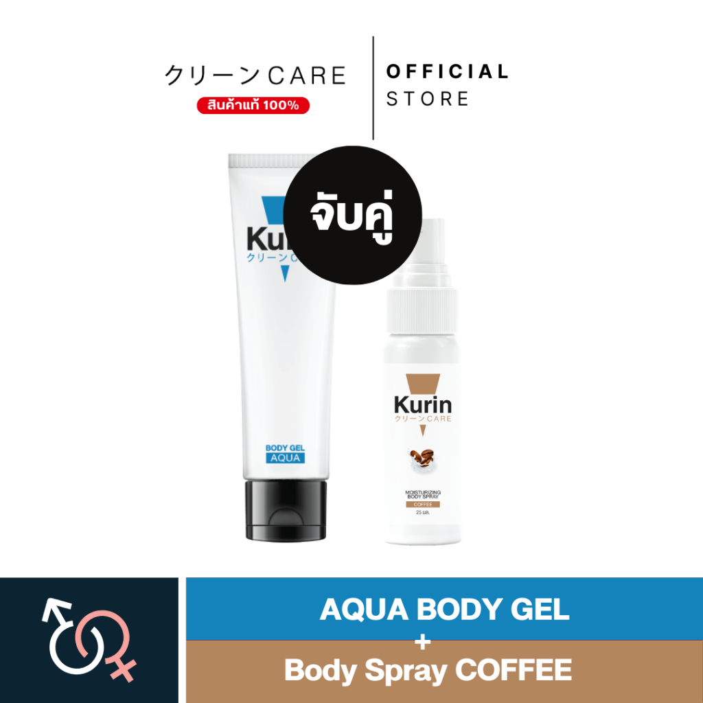 KURIN CARE AQUA BODY GEL เจลหล่อลื่น สูตรน้ำ ขนาด 100 ml และ BODY SPRAY COFFEE สเปรย์ฉีดบำรุงผิวกาย ขนาด 25 ml.