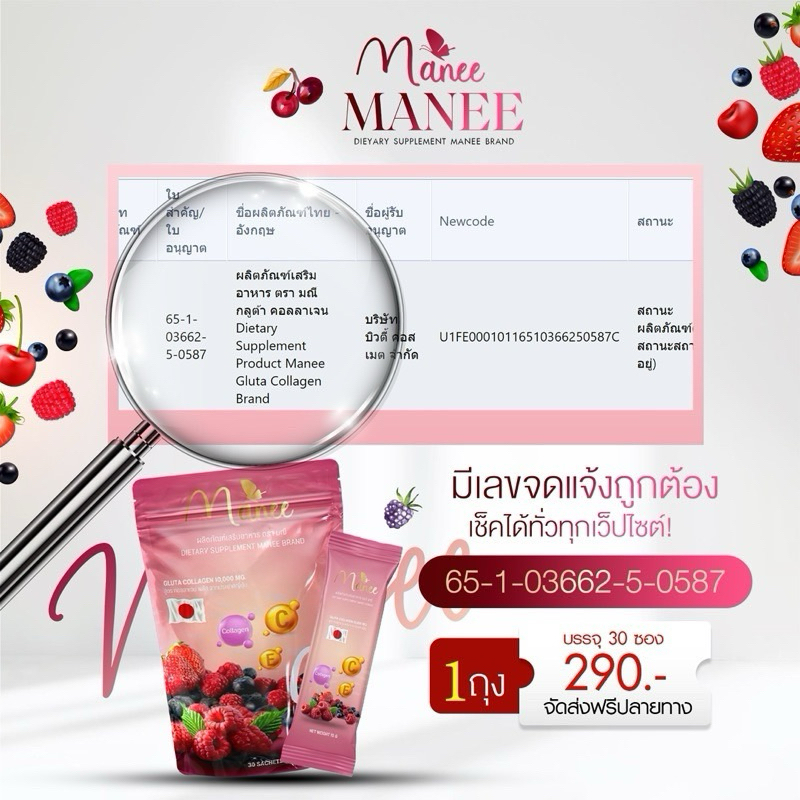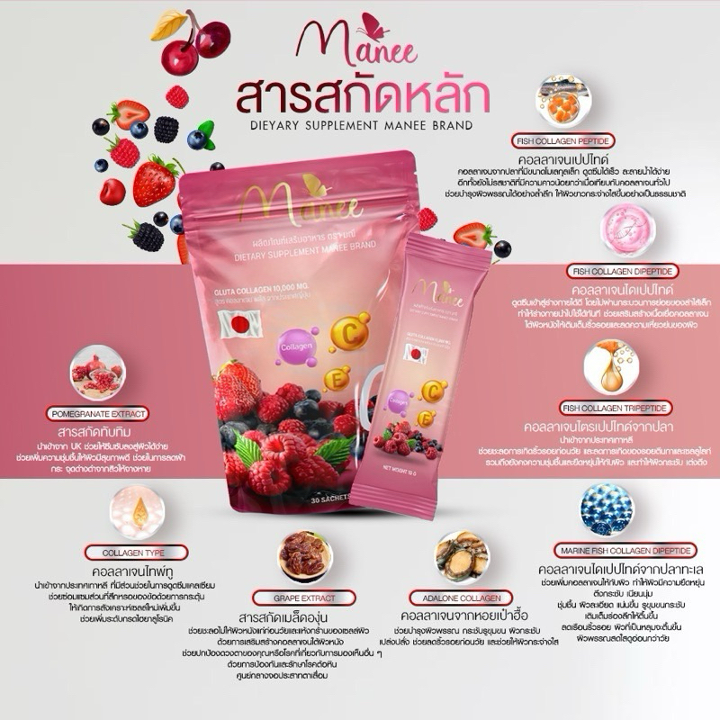 (1ห่อ) MANEE มณี กลูต้าคอลลาเจน / คามูซิงค์ / คอลลาเจนรังนก / ไวต้าซี