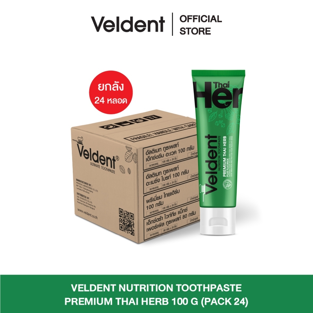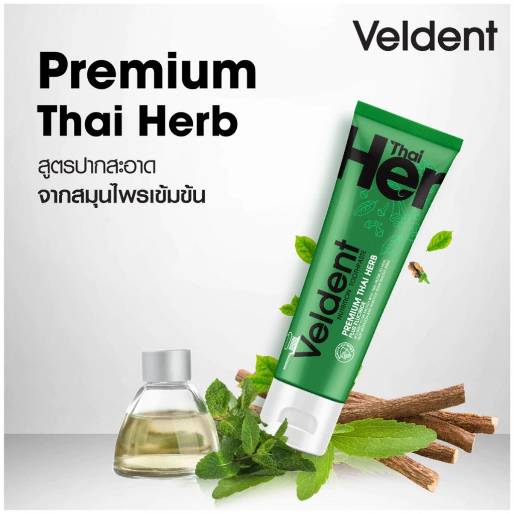 (ยกลัง 24 หลอด) VELDENT PREMIUM THAI HERB TOOTHPASTE ยาสีฟันเวลเดนท์ พรีเมียม ไทย เฮิร์บ (100 กรัม)