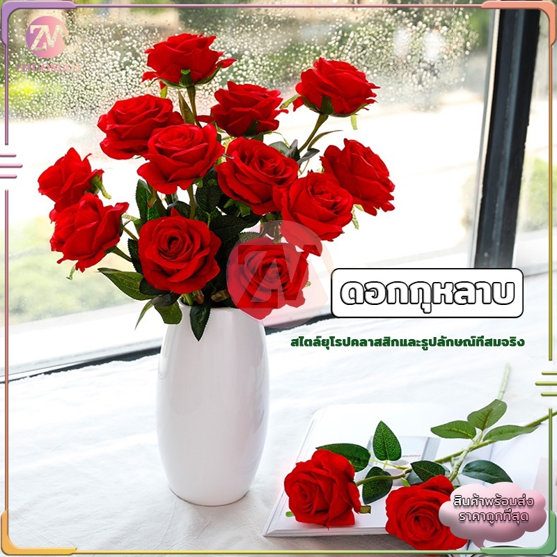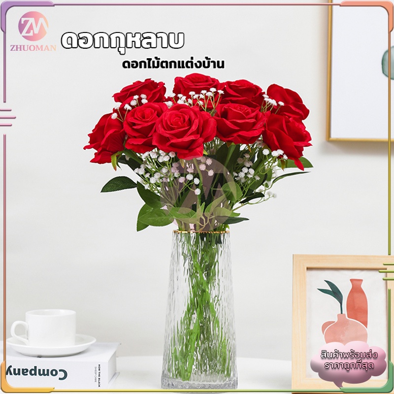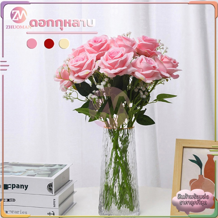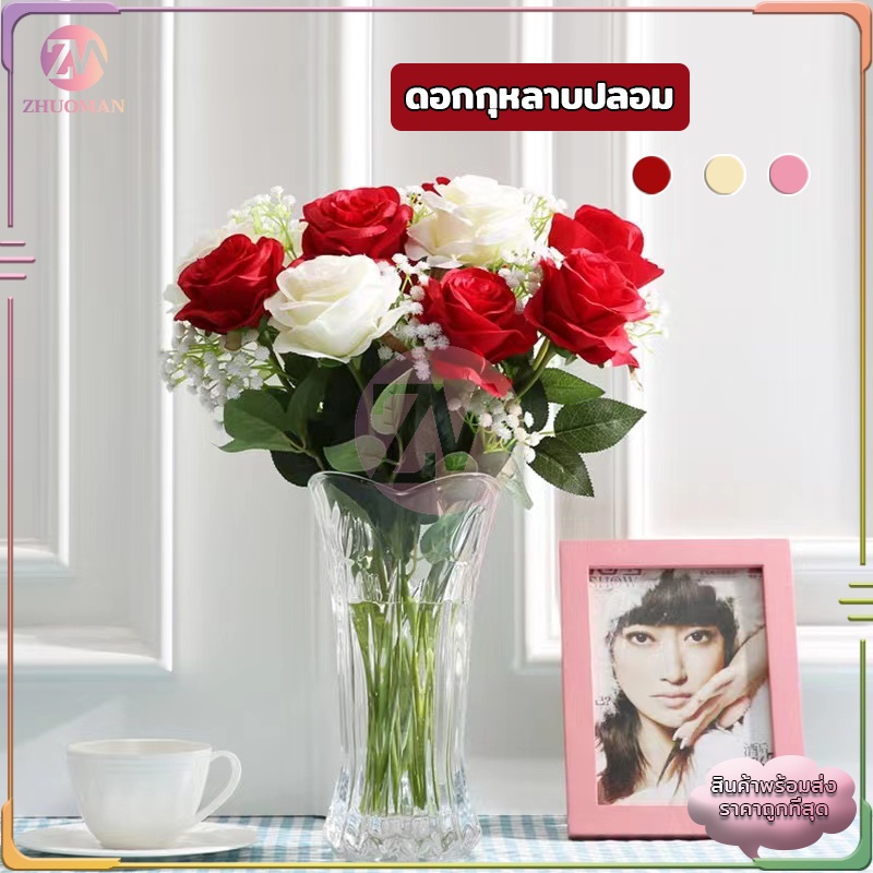 ดอกกุหลาบ ดอกกุหลาบปลอม ดอกไม้ปลอม กุหลาบปลอม ดอกไม้ประดิษฐ์ ดอกไม้ปลอมตกแต่งบ้าน พร๊อบถ่ายรูป ดอกไม้ตกแต่ง