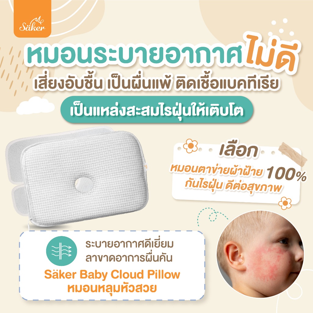 (อนาคตเริ่มต้นที่สิ่งนี้) หมอนหลุม Saker หัวสวย หัวไม่แบน หายใจผ่านได้ ป้องกันไรฝุ่น ดีต่อสุขภาพมาก