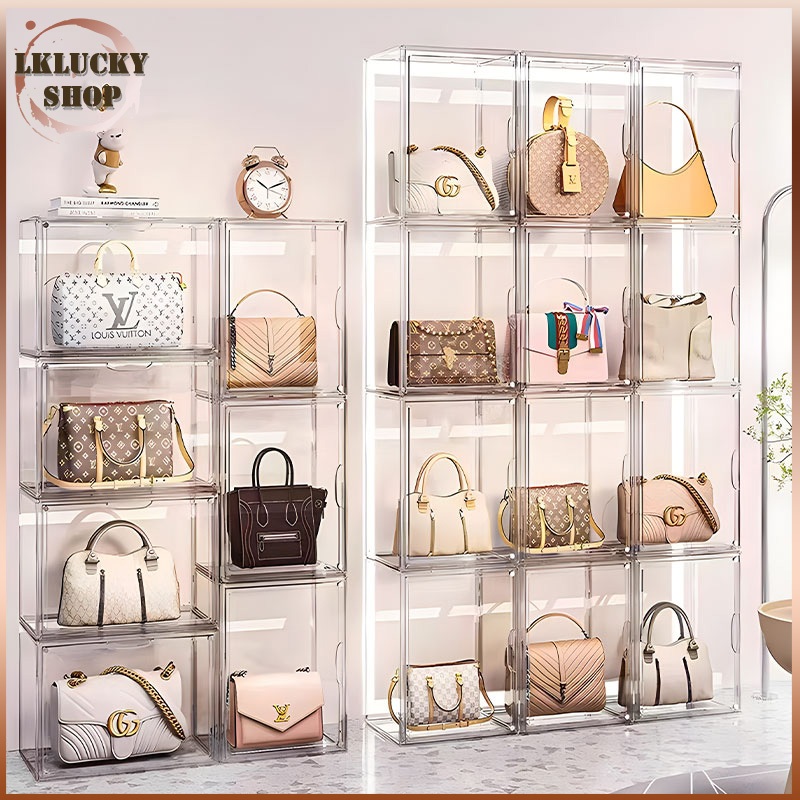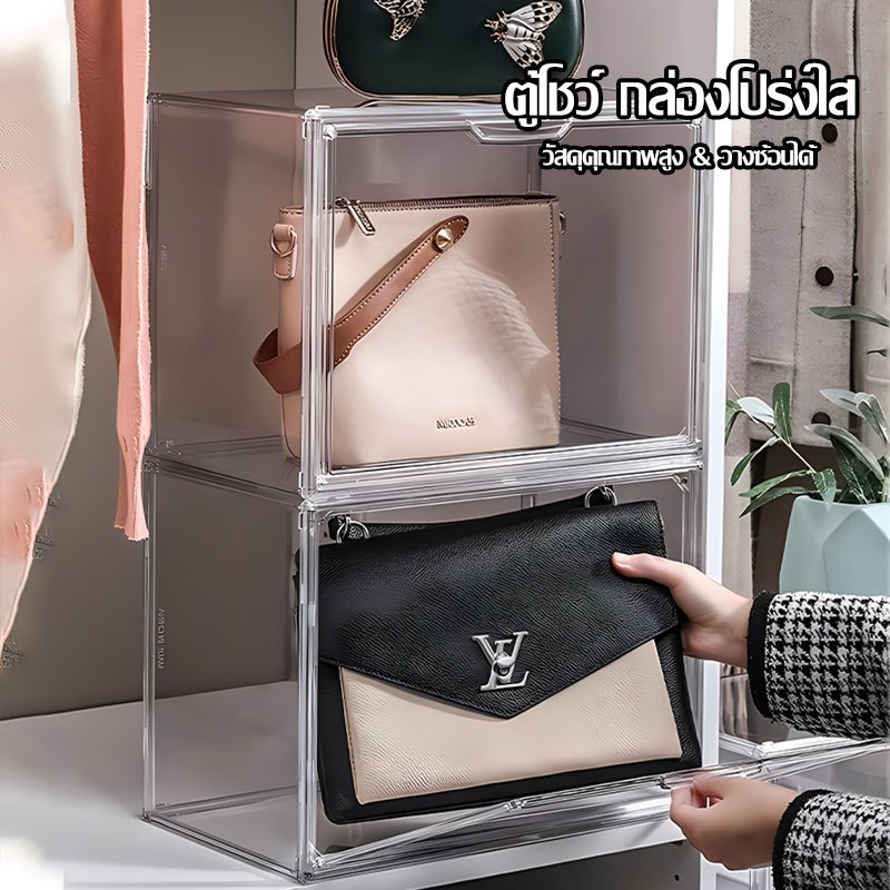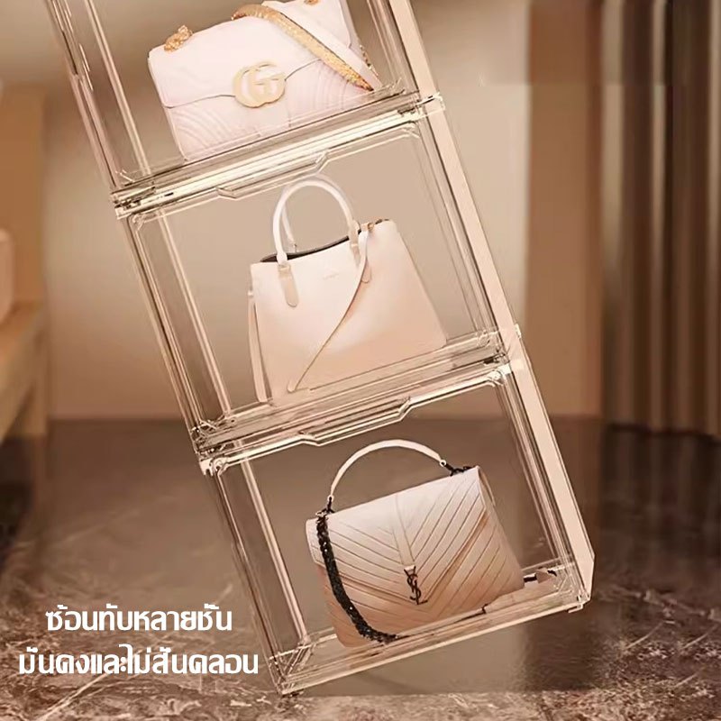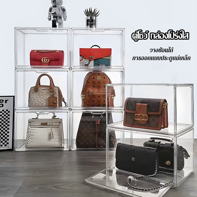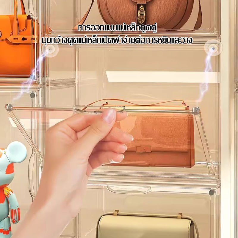 กล่องใสเก็บของ ตู้ใส กล่องใสเก็บข อง ตู้เก็บของกันฝุ่น กล่องเก็บของที่เก็บกระเป๋า ประตูแม่เหล็ก(1463)