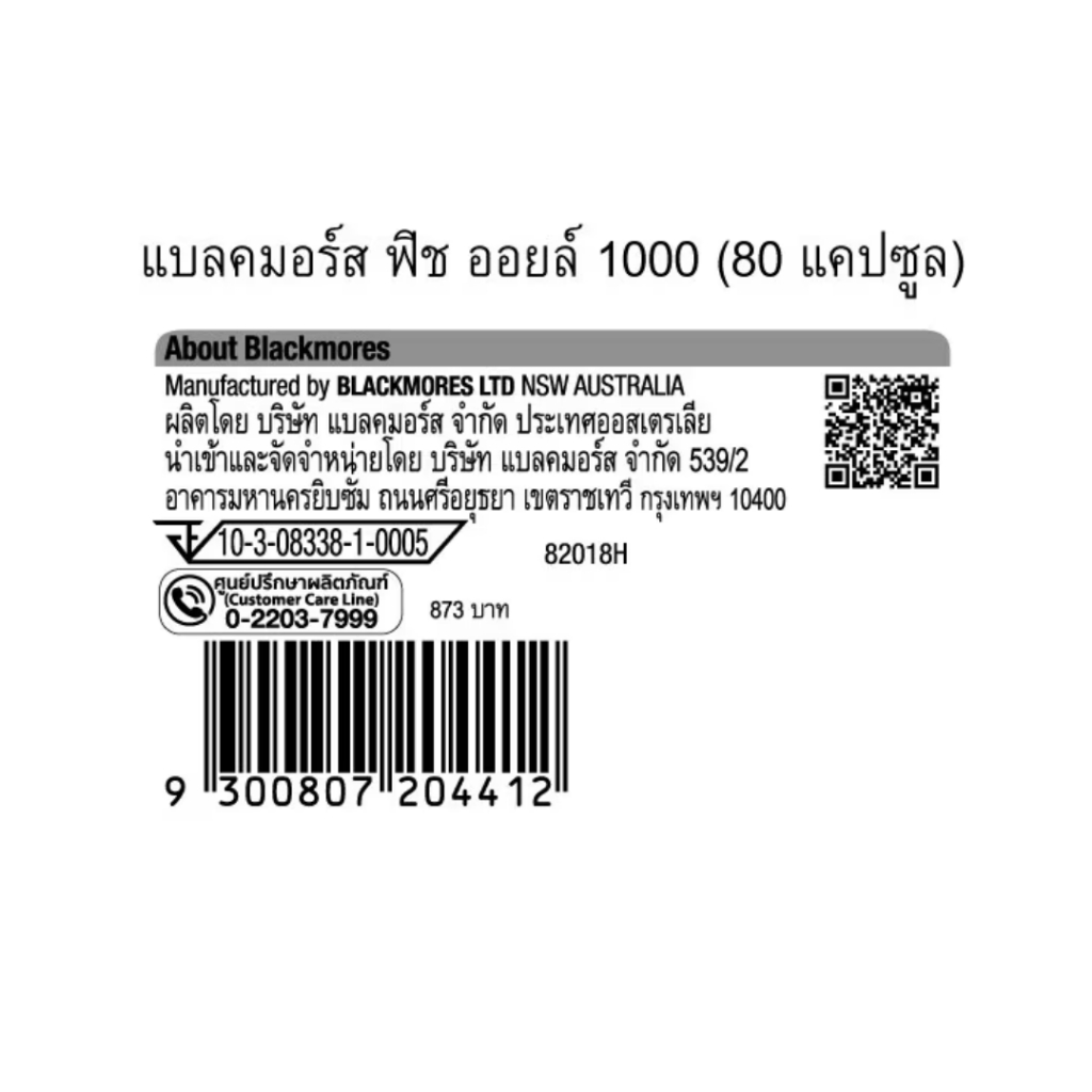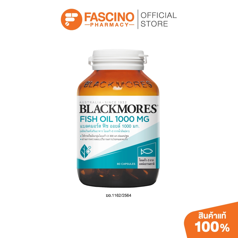 Blackmores แบลคมอร์ส ฟิช ออยล์ 1000 มก. โอเมก้า-3 (80 แคปซูล) – น้ำมันปลาโอเมก้า 3, น้ำมันปลา