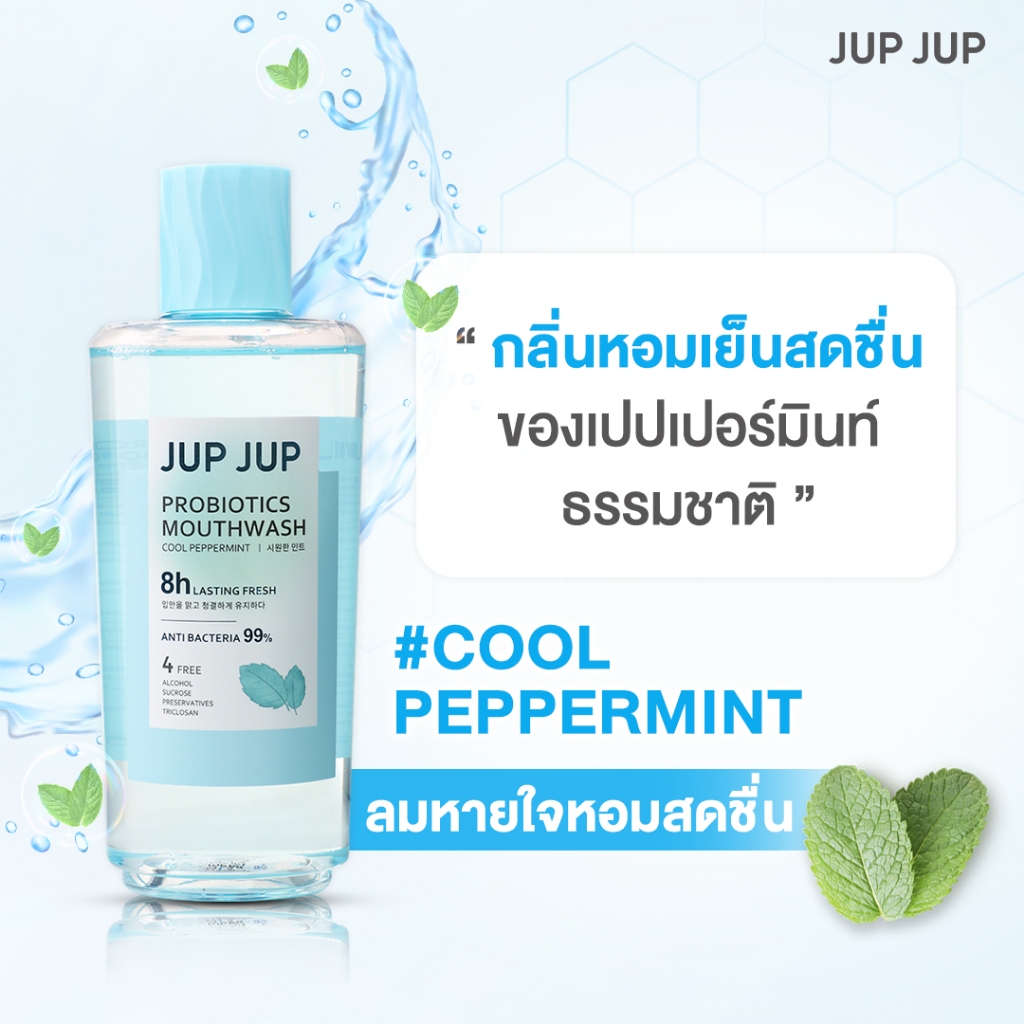 JUP JUP Probiotics Mouthwash 500ml #Cool Peppermint น้ำยาบ้วนปาก สูตรไบโอติก กลิ่นเปปเปอร์มินท์