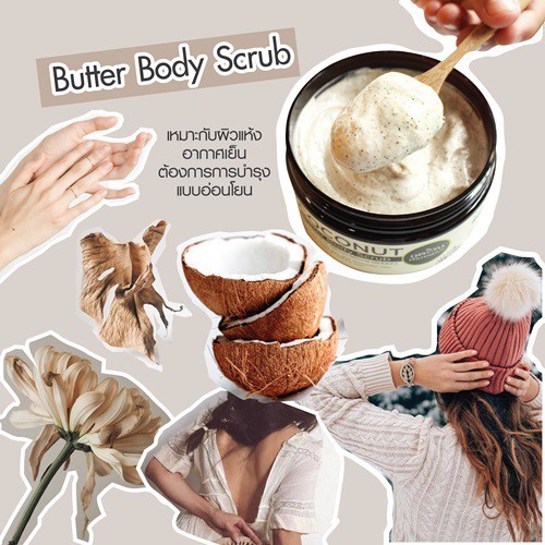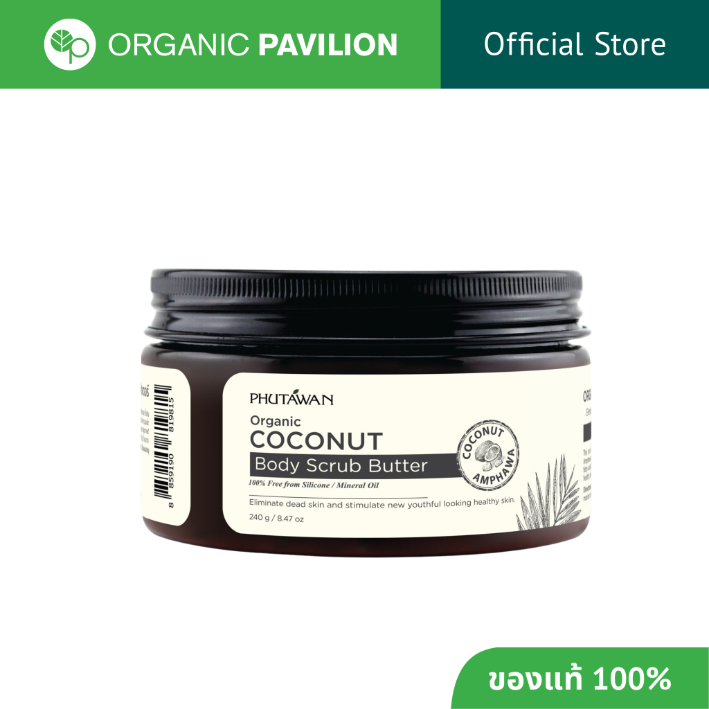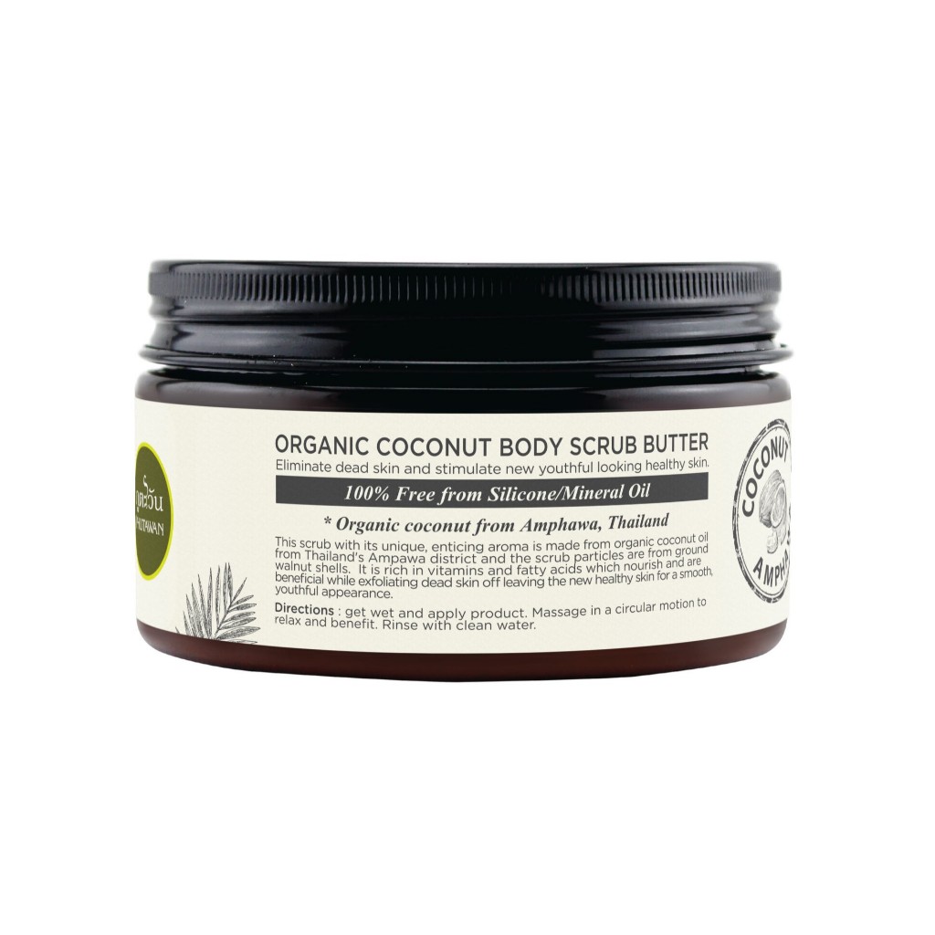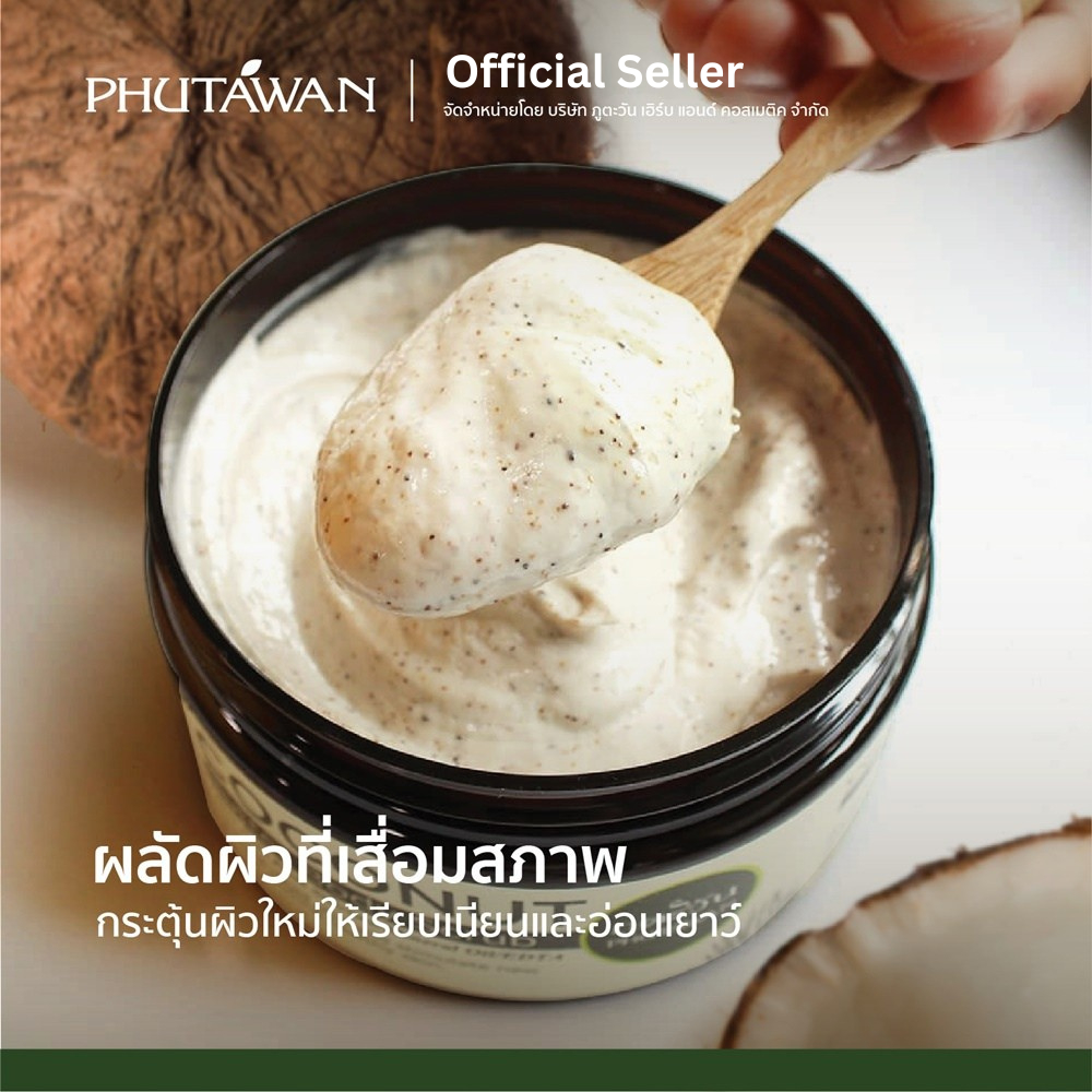 Phutawan ภูตะวัน สครับขัดผิวมะพร้าว เนื้อบัตเตอร์ เหมาะสำหรับคนผิวแห้ง แพ้ง่าย Organic Coconut Butter Body Scrub (240g)