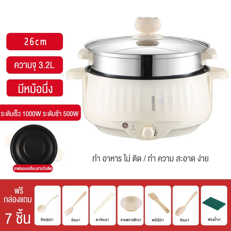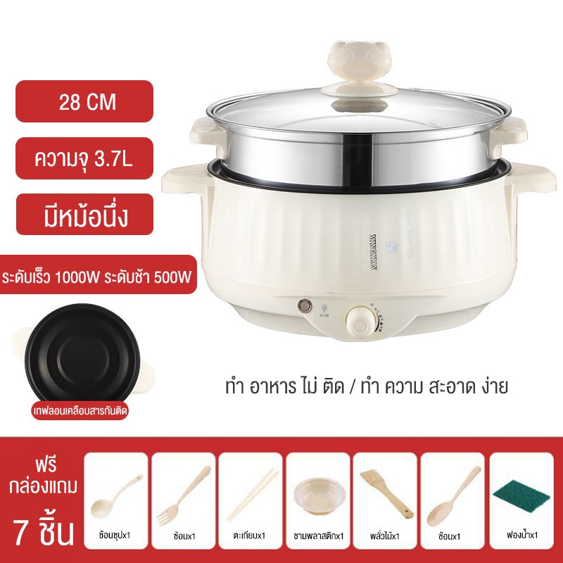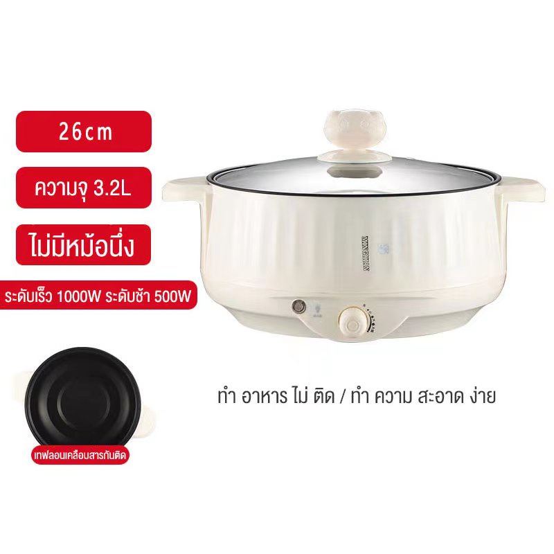Ksrain หม้อไฟฟ้า หม้อเอนกประสงค์ เตาไฟฟ้า กระทะไฟฟ้า หม้อสุกี้ หม้อชาบู ขนาดใหญ่ 28 cm.จุ3.2ลิตร