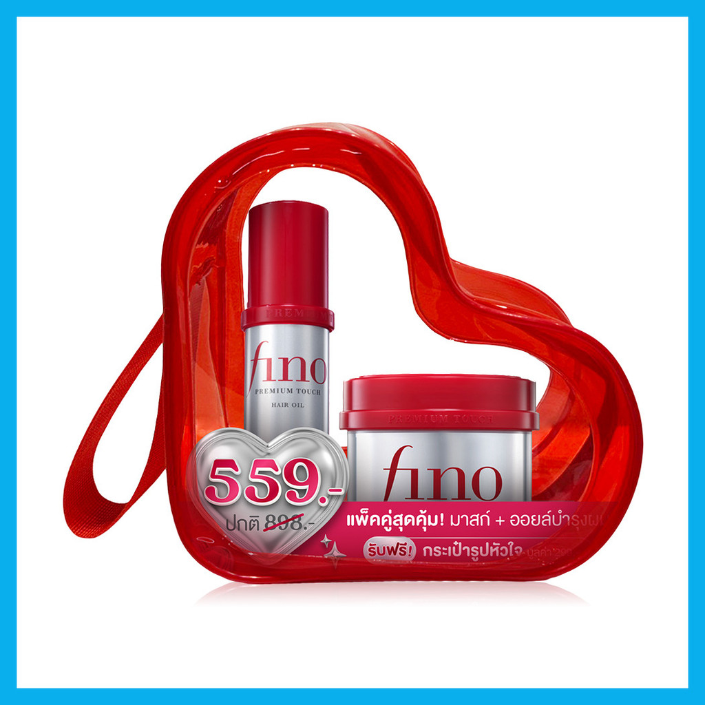 FINO Heart Bag Premium Touch Hair Mask 230g + Hair Oil Free 70ml เซทมาสก์และออยล์บำรุงผม ฟีโน่ ช่วยฟื้นบำรุงผมเสีย.