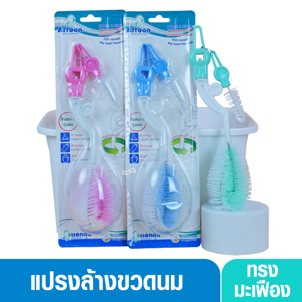 Attoon แอทตูน แปรงล้างขวดนมคอกว้างและจุกนมหัวมะเฟือง BR12