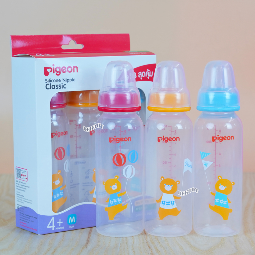 New Coro Pigeon พีเจ้น ขวดนมพีเจ้น PP 8 ออนซ์ ลายโคโร่ คอมาตรฐาน พร้อมจุกนมคลาสสิค size M แพ็ค 3 ขวด