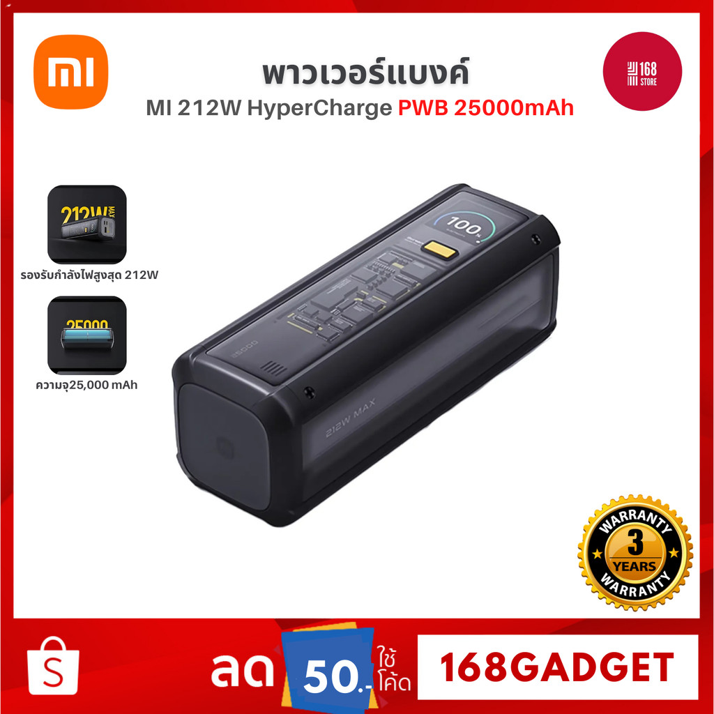 MI 212W HyperCharge PWB 25000mAh พาวเวอร์แบงค์ จ่ายไฟได้สูงสุด 212 W ชาร์จได้ 3 อุปกรณ์ รับประกัน 6 เดือน