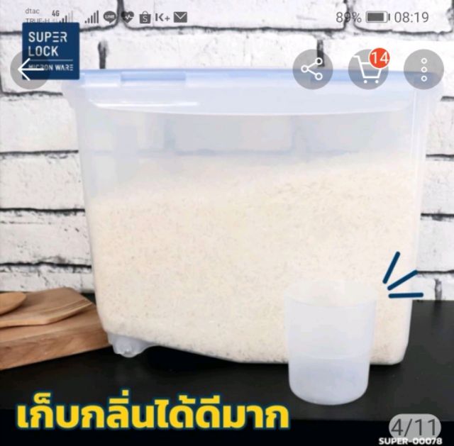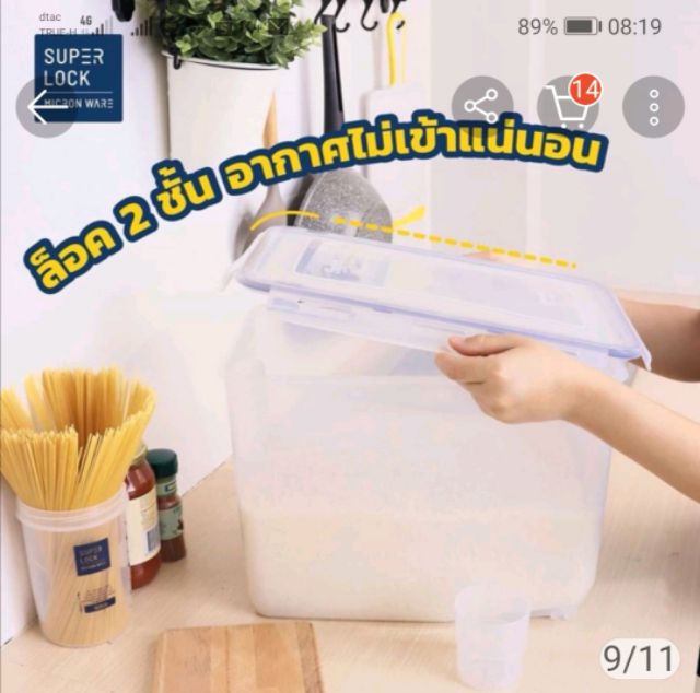 Super Lock กล่องใส่ข้าวสารมีถ้วยตวงรุ่น 6041 (16000ml.)บรรจุ10kg.plastic rice container