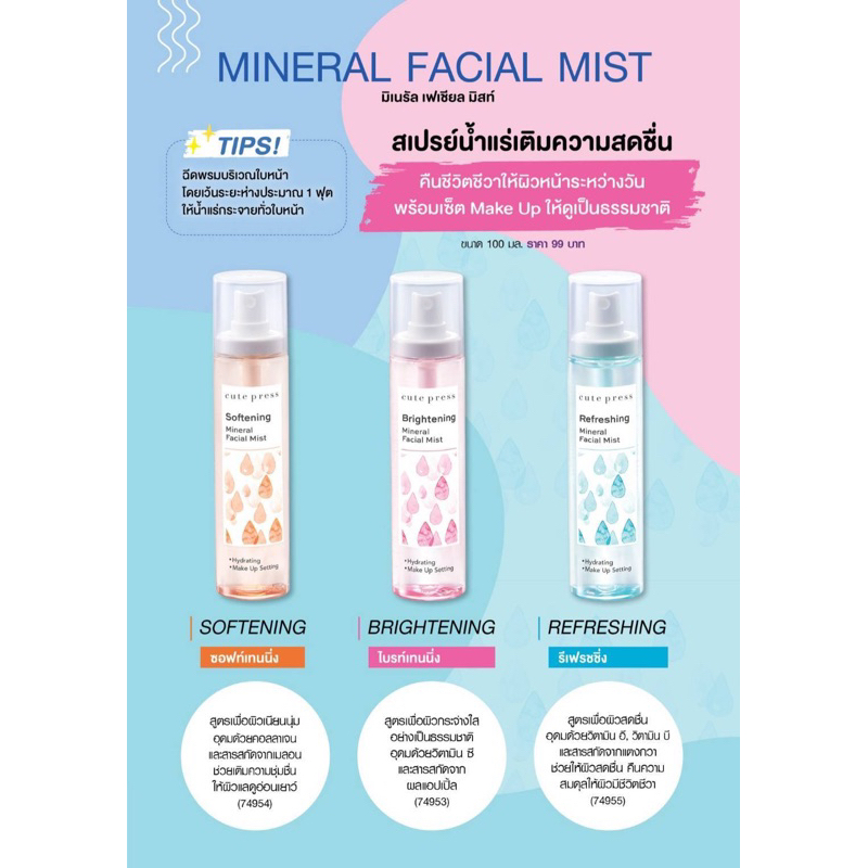 สเปรย์น้ำแร่ Cute Press Mineral Facial Mist 3 สูตร ขนาด 100 ml.