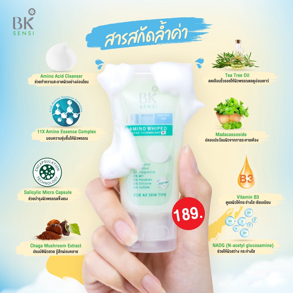 BK Sensi Amino Perfect Relaxing Whip Foam บีเค เซนซิ อะมิโน เพอร์เฟ็ค รีแล็คซิ่ง วิป โฟม [50 ml.]