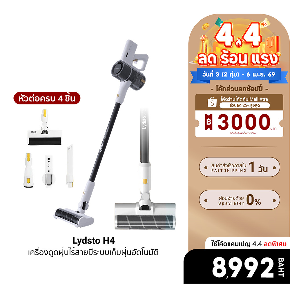 [ลดเหลือ 8992] Lydsto H4 เครื่องดูดฝุ่นไร้สายมีระบบเก็บฝุ่นอัตโนมัติ ดูดแรง แบตเตอรี่ 2500mAh มีไฟ LED -3M