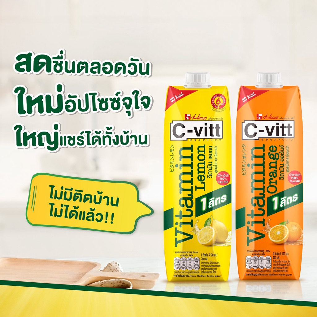 C-vitt ซีวิท เครื่องดื่มวิตามินซี สูตรน้ำตาลน้อยกว่า ขนาด 125 ml. และ 1000 ml. ซีวิค ซีวิต ซีวิด