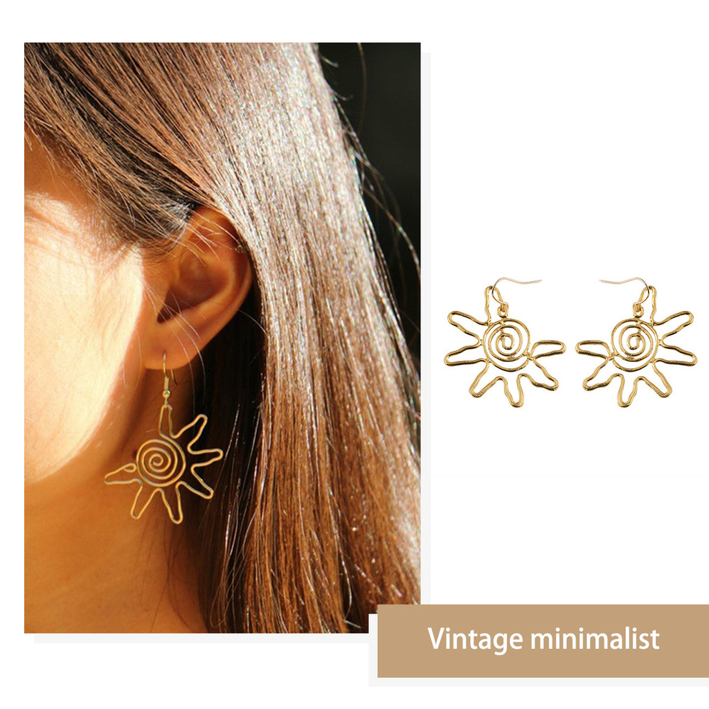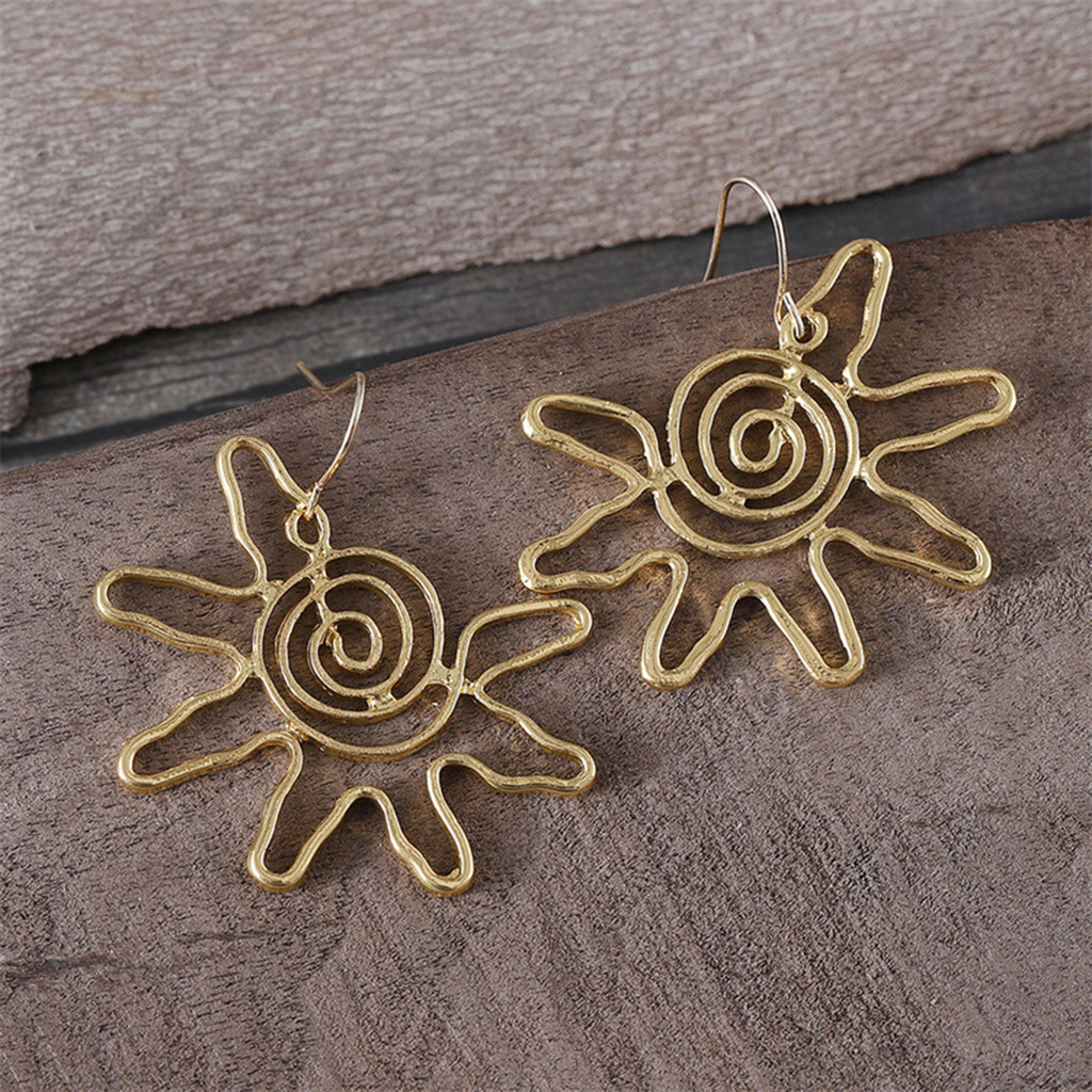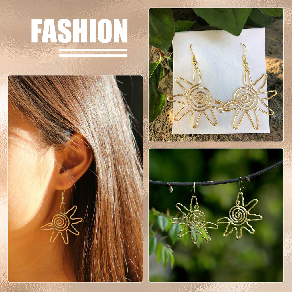 ต่างหูโบฮีเมียนย้อนยุค ออกแบบลายดอกทานตะวัน เครื่องประดับแฟชั่นสำหรับสุภาพสตรี