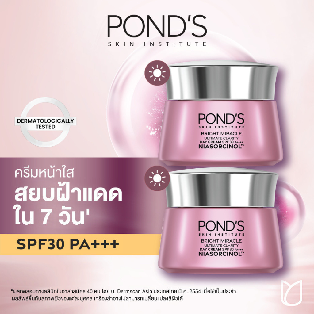 พอนด์ส ไบรท์ มิราเคิล เดย์ ครีม spf30 ครีมหน้าใส ลดฝ้าแดดใน 7 วัน ไนอาซอร์ซินอล 45 ก.