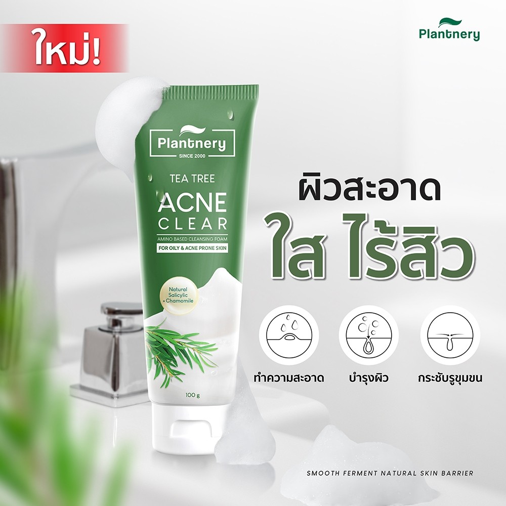 [ขนาด100g.] แพลนท์เนอรี่ โฟมล้างหน้า Plantnery Tea Tree Acne Whip Foam ที ทรี แอคแน่ วิป โฟม สูตรลดสิว ลดความมัน