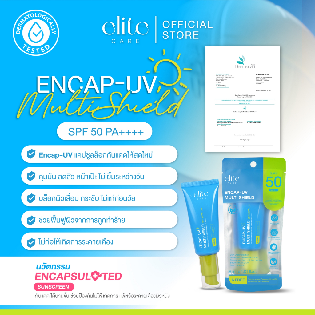 กันแดดสูตรใหม่ SPF50 PA++++ อีลิท แคร์ เอนแคป–ยูวี มัลติ ชิลด์ เอสพีเอฟ50พีเอ++++ 30 ml Elite Care Encap-UV Multi Shield