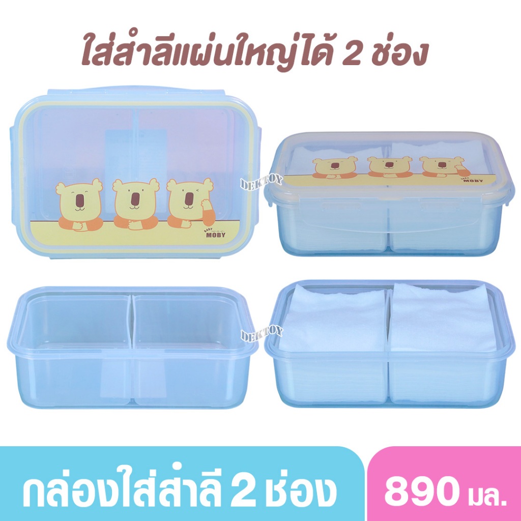 Baby moby เบบี้ โมบี้ กล่องพลาสติก 2 ช่อง สำหรับใส่สำลี เบบี้ โมบี้ 890มล.
