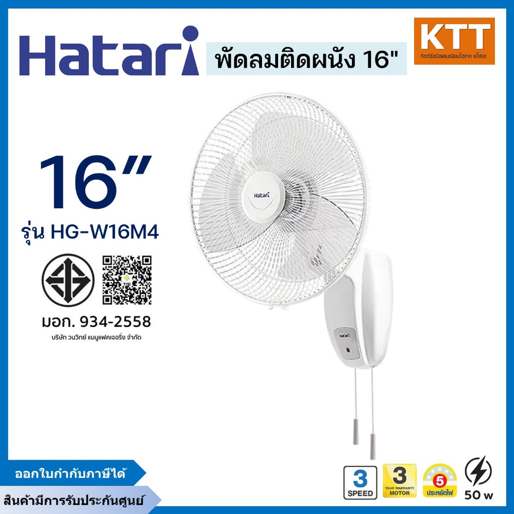 พัดลมติดผนัง HATARI ขนาด 16 นิ้ว รุ่น HG-W16M4 สีขาว รับประกัน 3 ปี