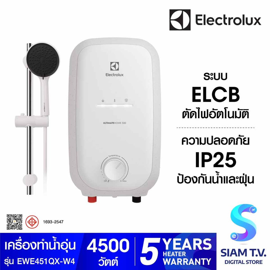ELECTROLUX เครื่องทำน้ำอุ่น4500W+ราวสไลด์ สีขาว Series500 รุ่น EWE451QXW4 โดย สยามทีวี by Siam T.V.