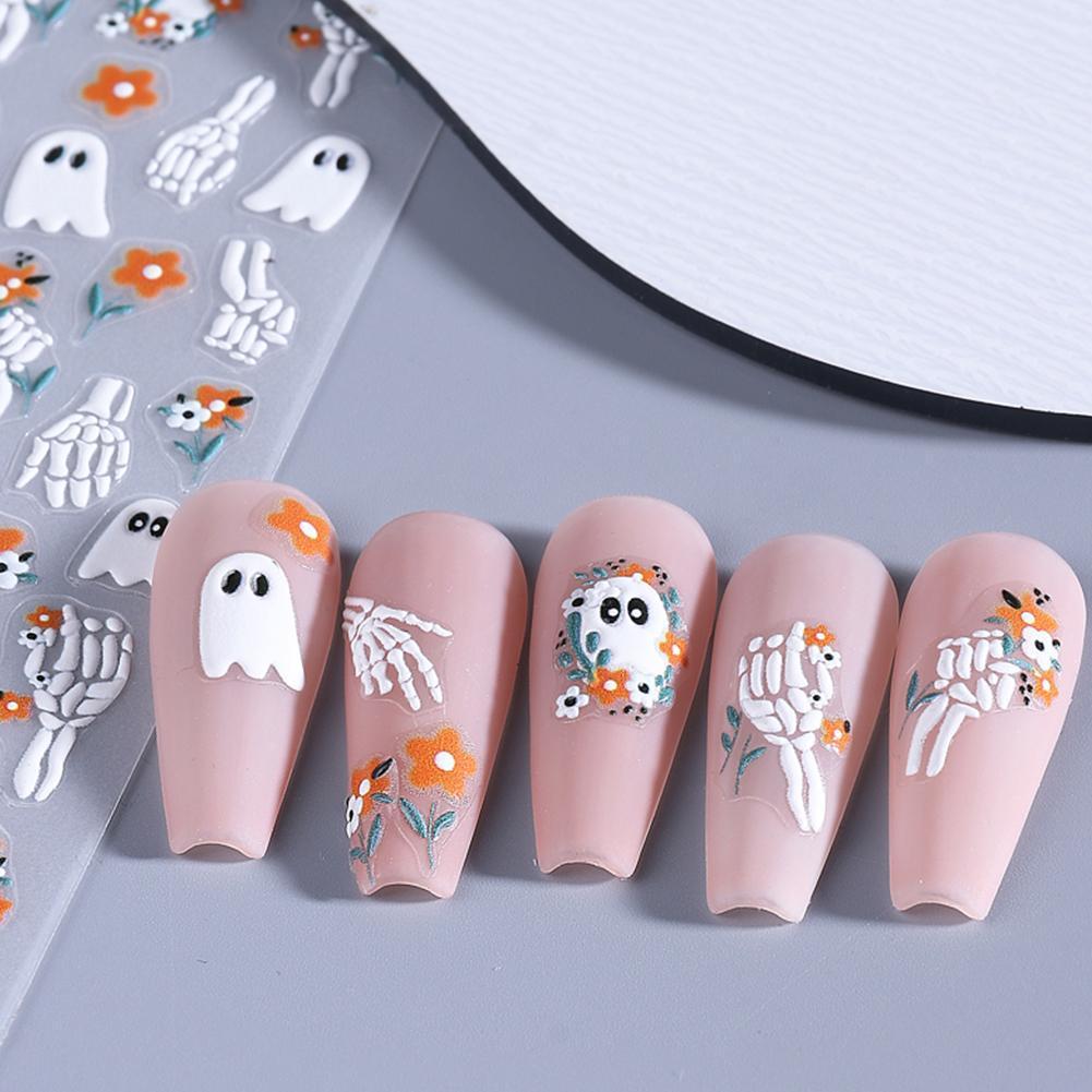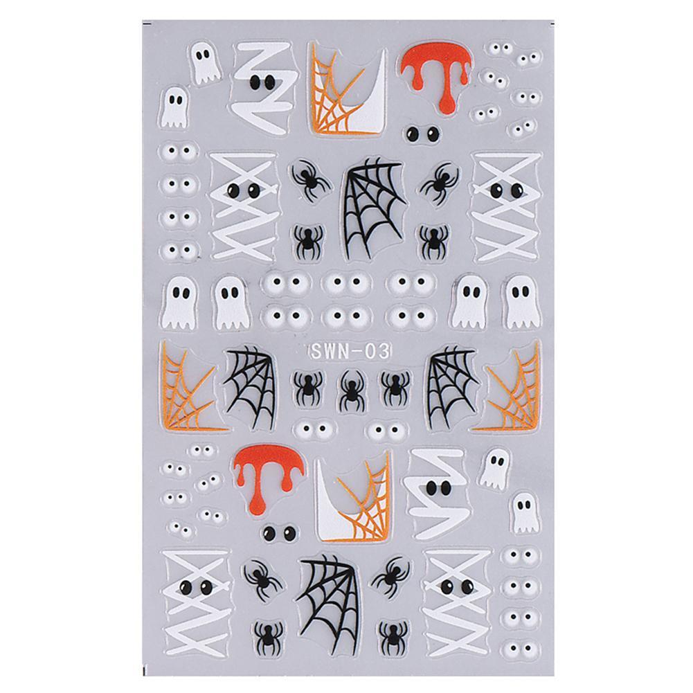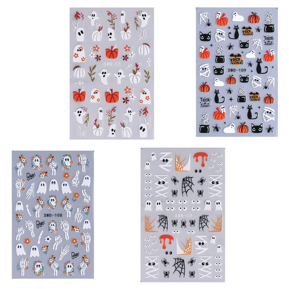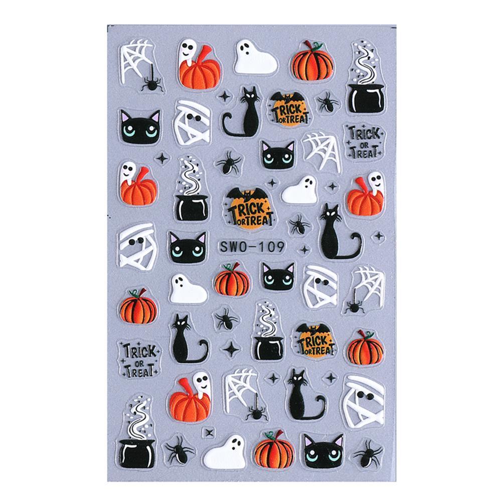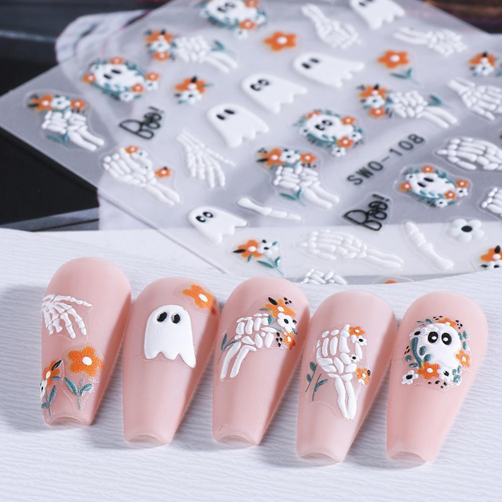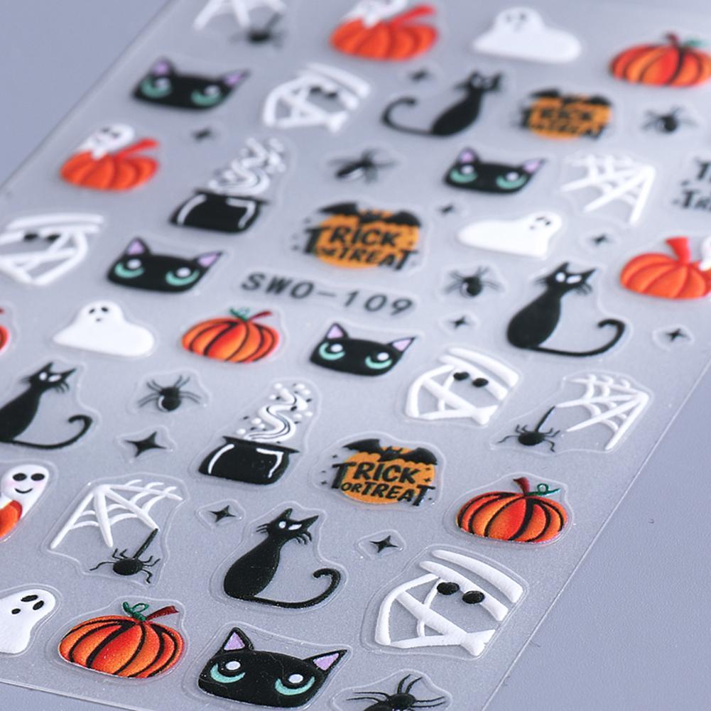 ฮาโลวีนการ์ตูนเล็บสติกเกอร์เล็บสติกเกอร์ 3d กาวเล็บ Diy เล็บ Sliders Art N6d9