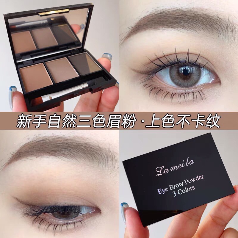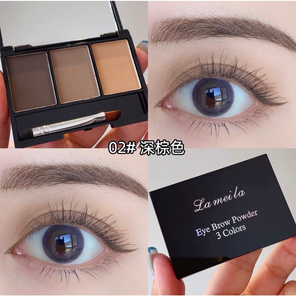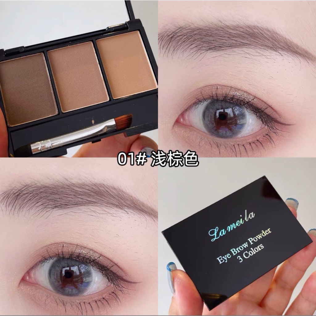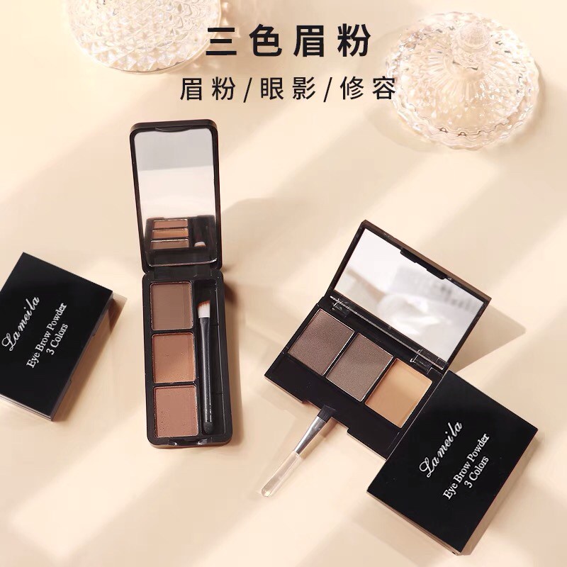 Lameila 3605 เขียนคิ้วตลับ 3in1 คิ้วฝุ่นอัดแข็ง 3 มิติ แถมแปรงปัดคิ้ว 2 หัว สไตล์เกาหลี กันน้ำ ติดทน Eyebrow Powder
