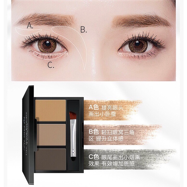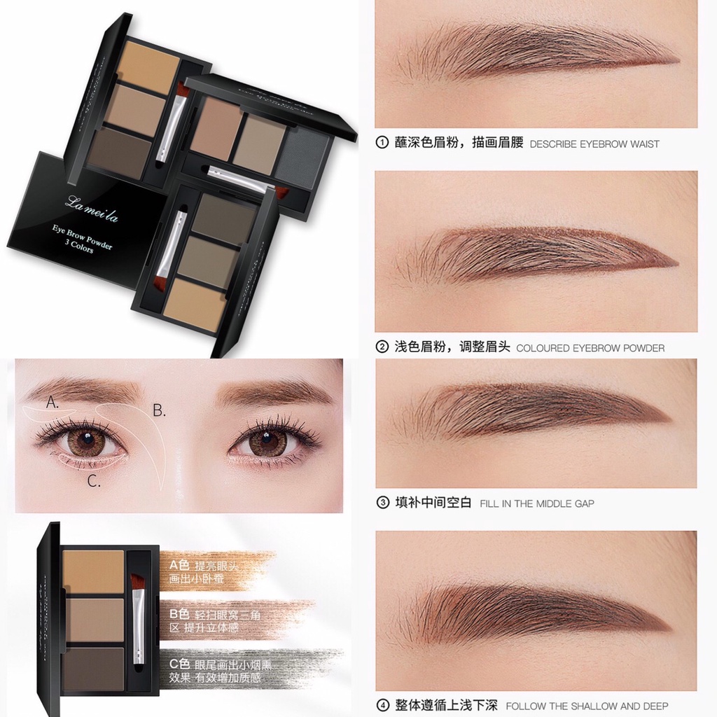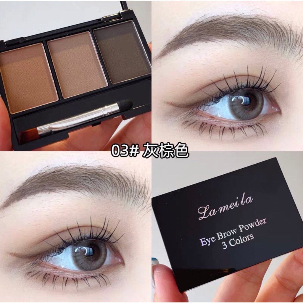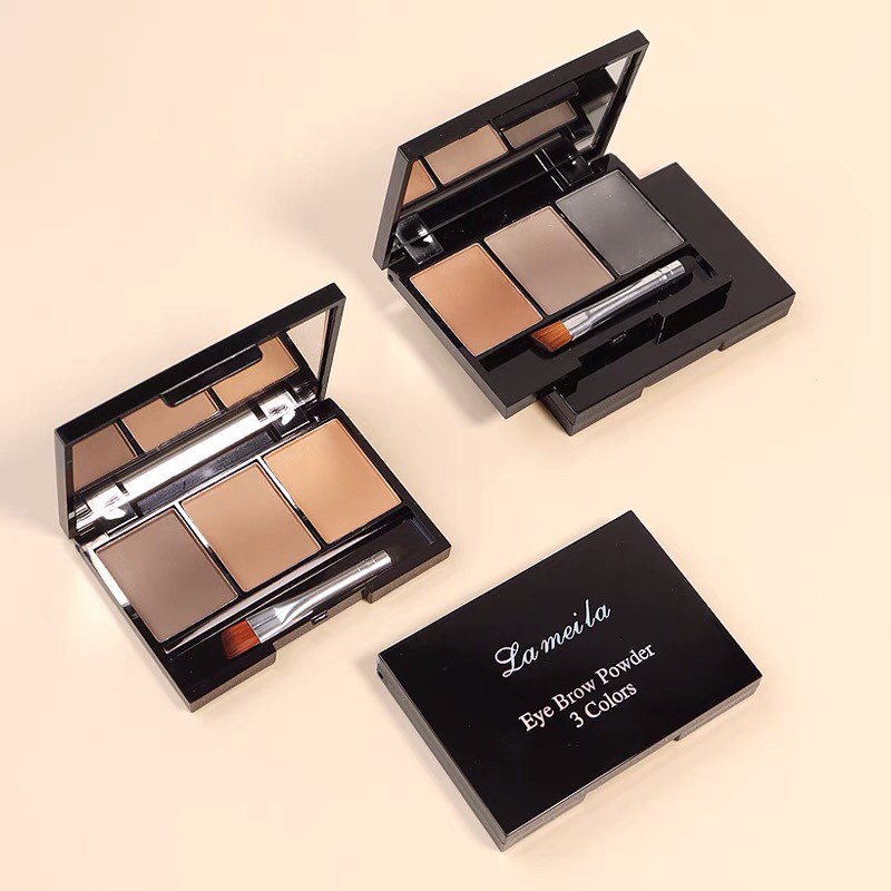 Lameila 3605 เขียนคิ้วตลับ 3in1 คิ้วฝุ่นอัดแข็ง 3 มิติ แถมแปรงปัดคิ้ว 2 หัว สไตล์เกาหลี กันน้ำ ติดทน Eyebrow Powder