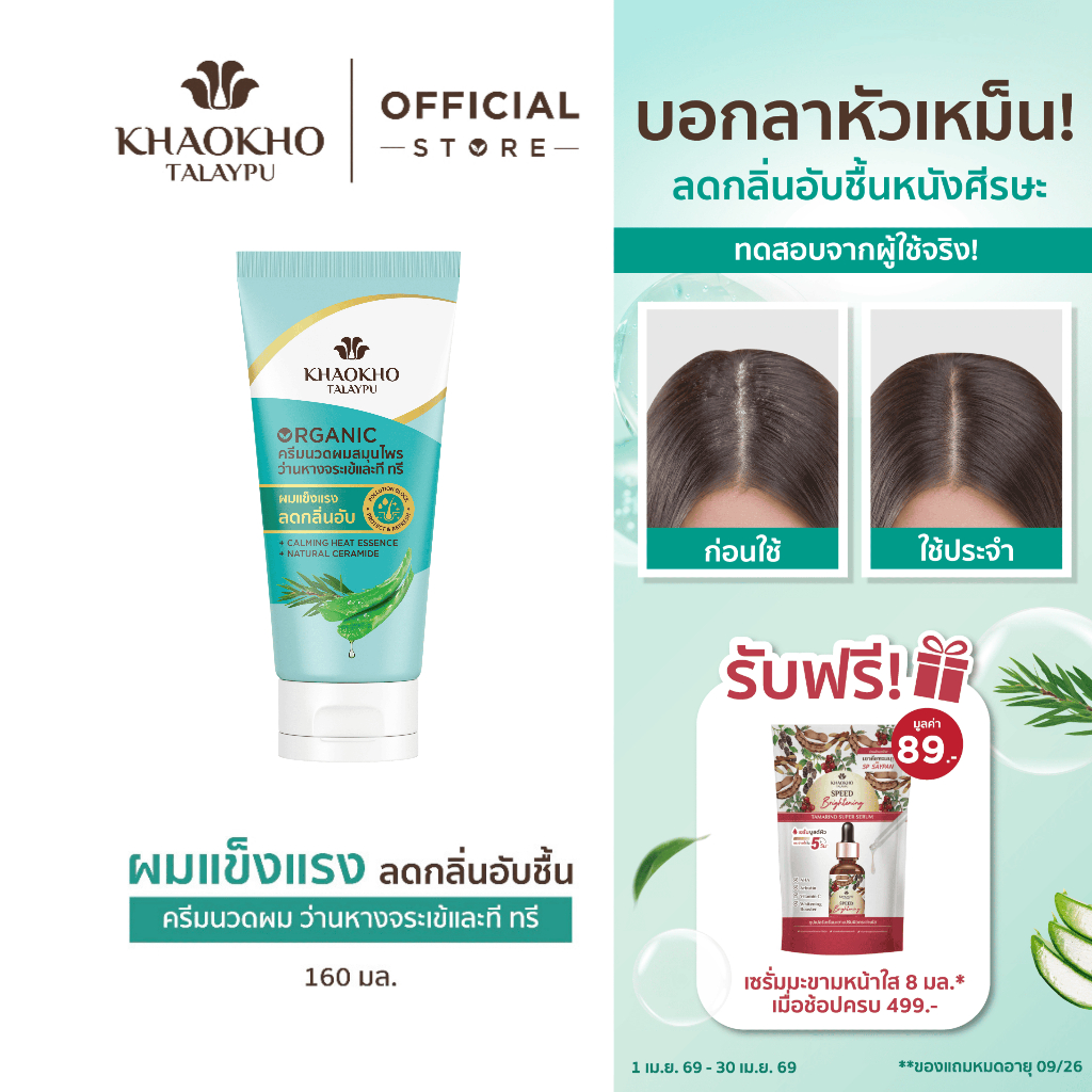 Khaokho Talaypu เขาค้อทะเลภู ครีมนวดผม สูตรว่านหางจระเข้และที ทรี ช่วยเติมความชุ่มชื่น (160 มล.)