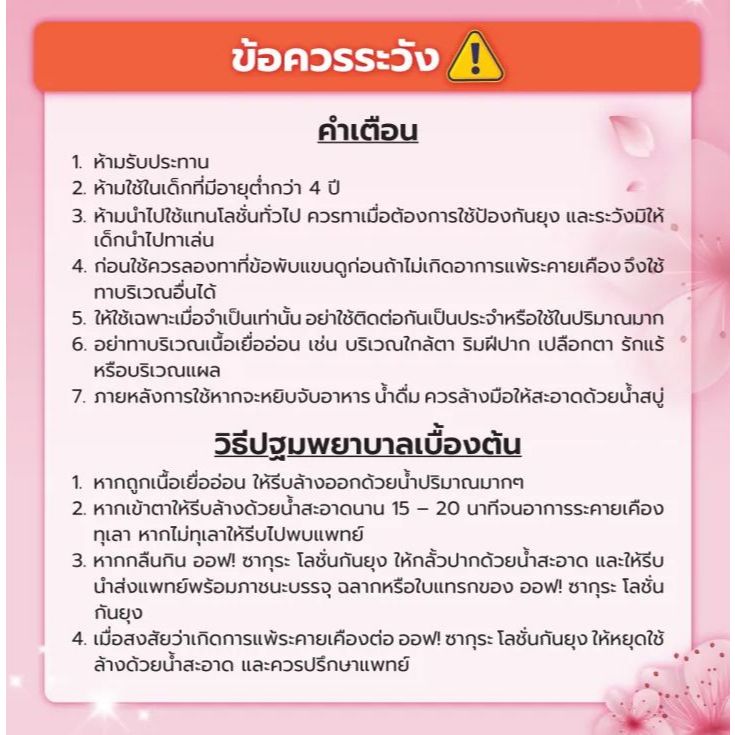 OFF! ออฟ! ซากุระ โลชั่นกันยุง กลิ่นซากุระ 6 มล, 50 มล. โลชั่นป้องกันยุง / สเปรย์ 170 มล.