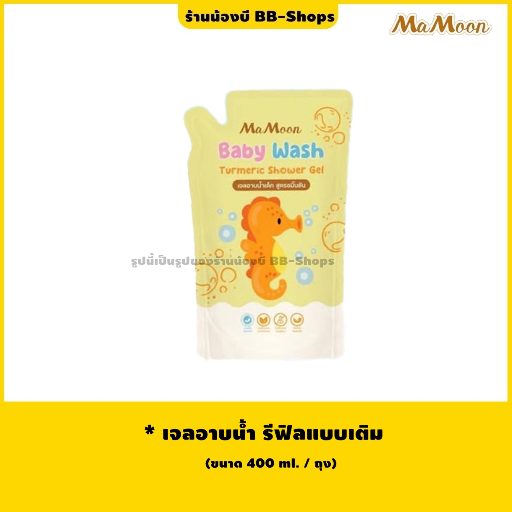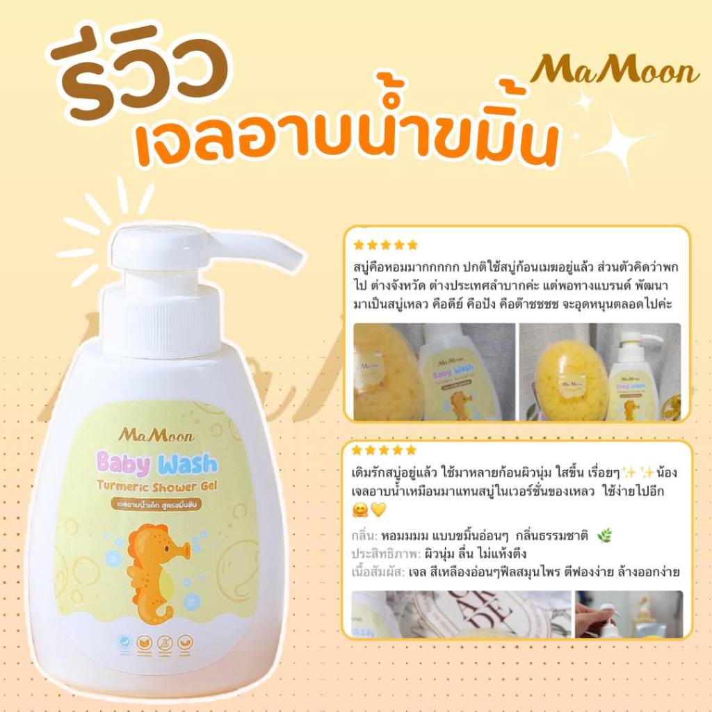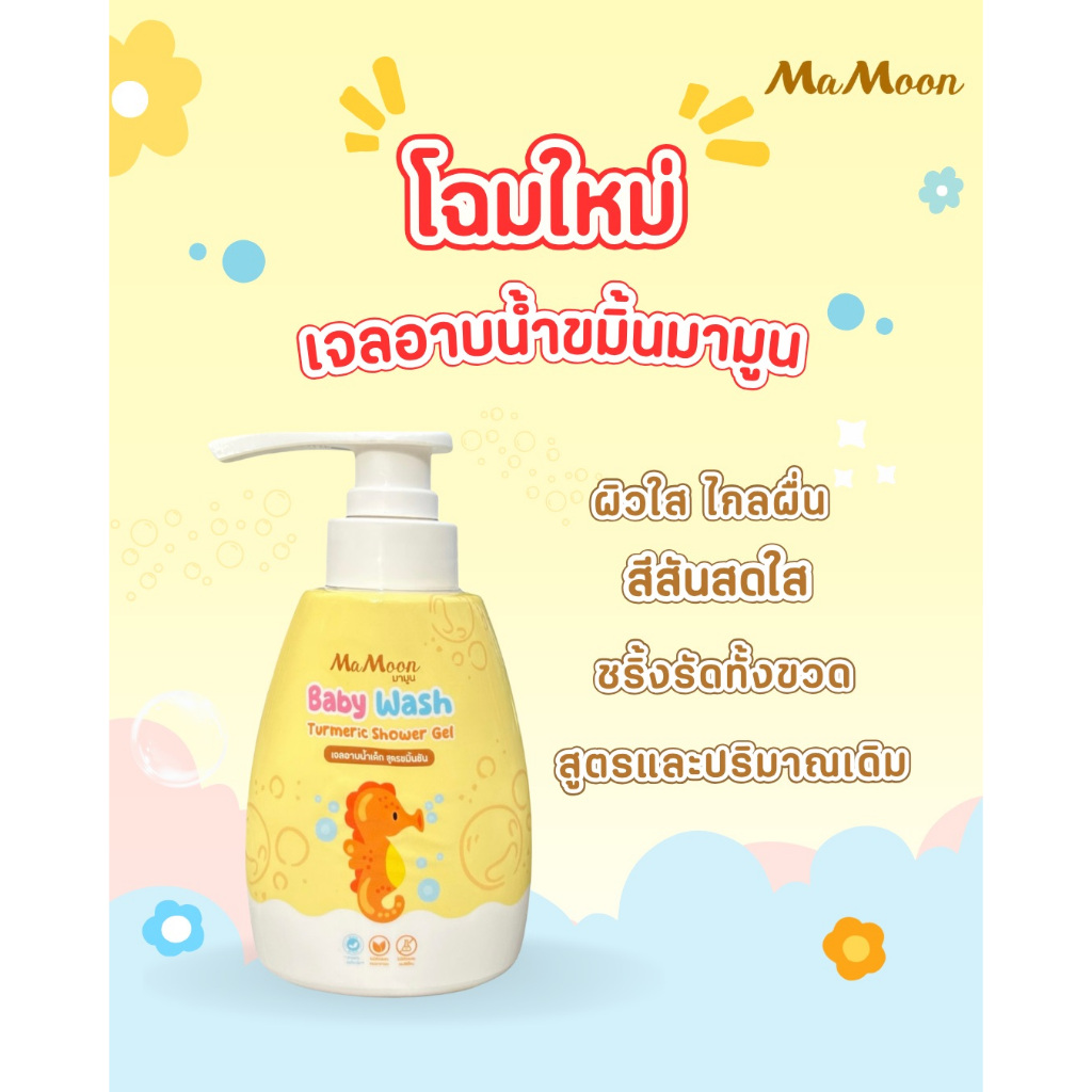แพคเกจใหม่ ☀️มามูน เจลอาบน้ำ สูตรขมิ้นชัน Mamoon Baby Wash Turmeric Shower Gel [250 ml.]
