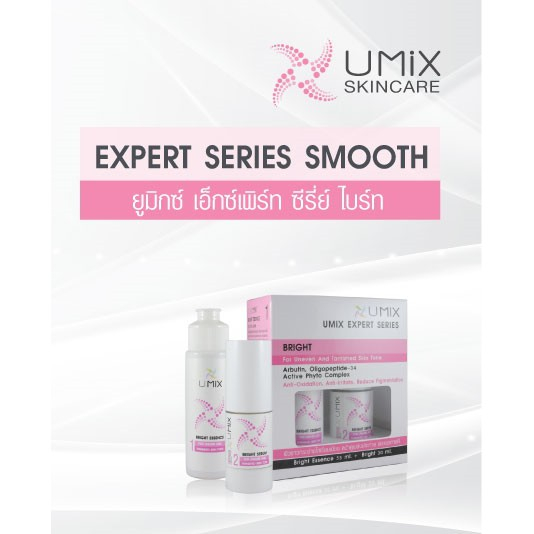 ส่งฟรี !! 🌟 เซทบำรุง เพื่อให้ผิวขาวกระจ่างใส (ขนาดทดลอง เอสเซนต์ 15 ml +เซรั่ม 5ml.) UMIX EXPERT SERIES BRIGHT