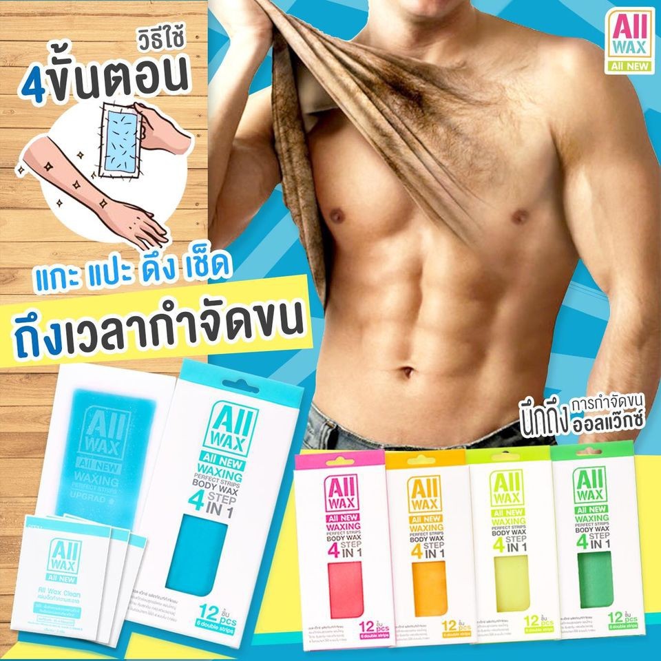 (1กล่อง) ออล แว๊กซ์ กำจัดขน All Wax All New Waxing Perfect Strips Body Wax 4 Step in1