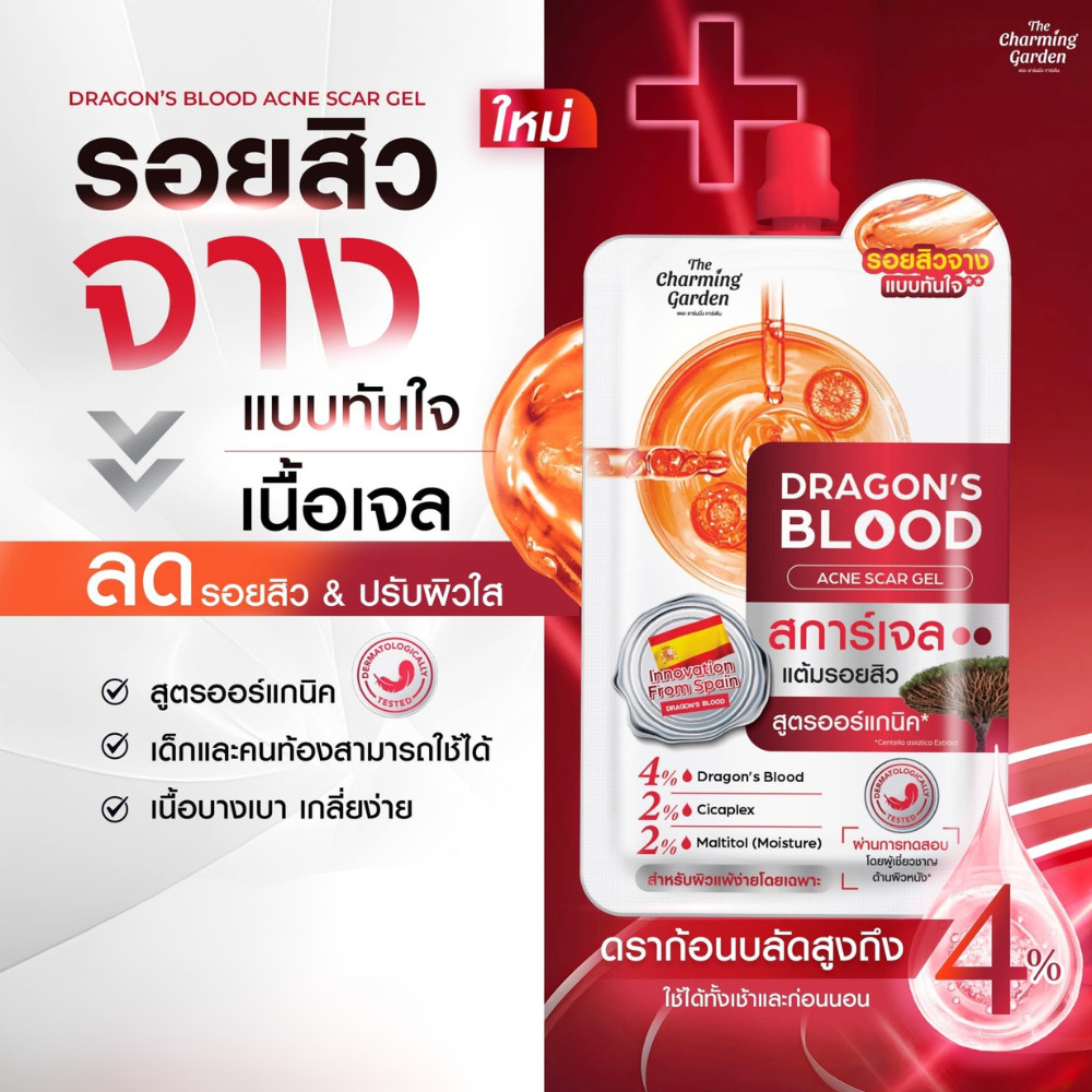 🔥แท้/ถูกที่สุด/ไลฟ์ทุกวัน🔥(1ซอง) The Charming Garden เจลบำรุงผิวหน้า Dragon's Blood Acne Scar 7กรัม