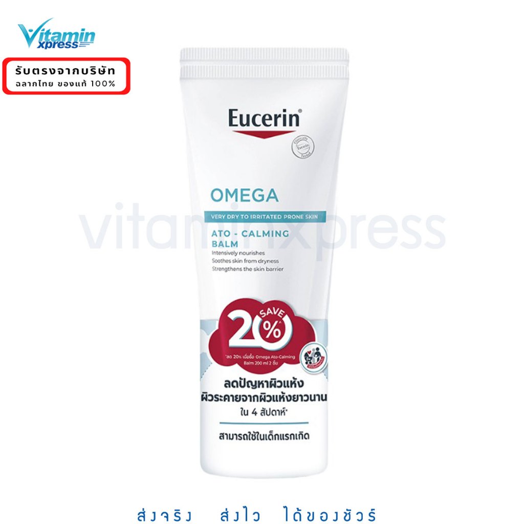 แพคคู่ Eucerin Omega Balm 200mlx2หลอด.บาล์มบำรุงผิวหน้าและผิวกาย สำหรับผู้มีปัญหาผิวแห้ง แดง คัน จากยูเซอริน