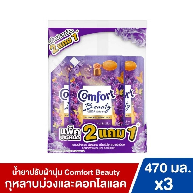 Comfort คอมฟอร์ท บิวตี้ เพอร์ฟูม น้ำยาปรับผ้านุ่ม 475mlx3 หอมละมุน สดชื่น หอมหวาน ติดผ้า