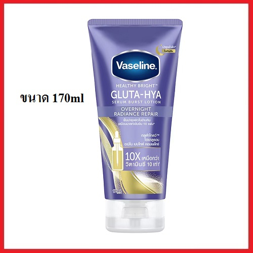 วาสลีน เฮลธี้ไบรท์ กลูต้าไฮยา เซรั่มเบิสท์ โลชั่น โอเวอร์ไนท์ เรเดียนซ์ รีแพร์ Vaseline Overnight Radiance Repair 170มล.