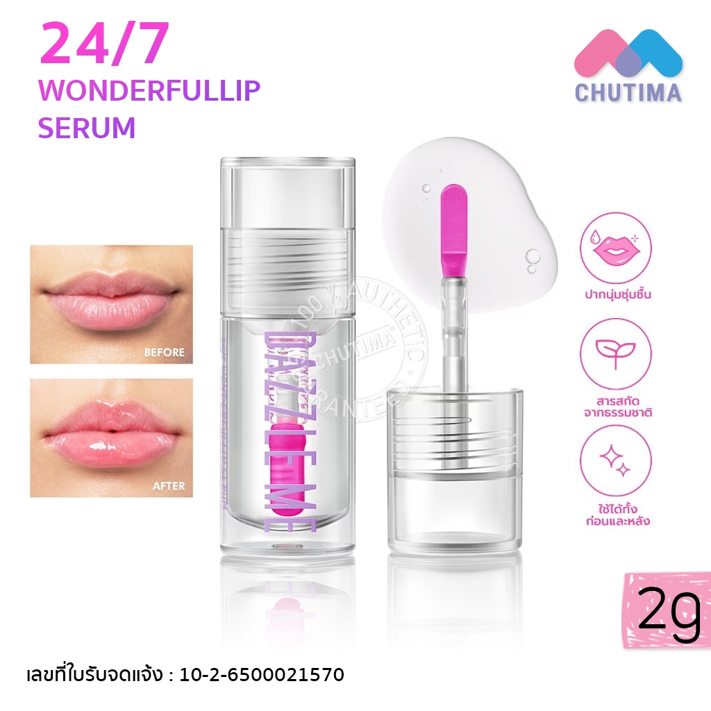แดซเซิล มี ลิป เซรั่ม บำรุงริมฝีปาก ลดร่องปาก เติมความชุ่มช ื้น Dazzle Me 24/7 Wonderfullip Serum 2 g.