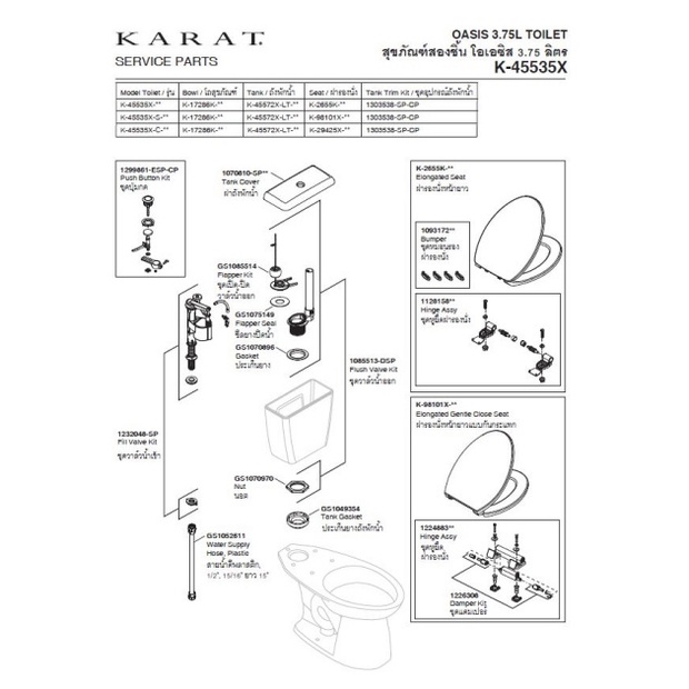 GlobalHouse karat สุขภัณฑ์สองชิ้น รุ่น K-45535X-S ขนาด สินค้าของแท้คุณภาพดี