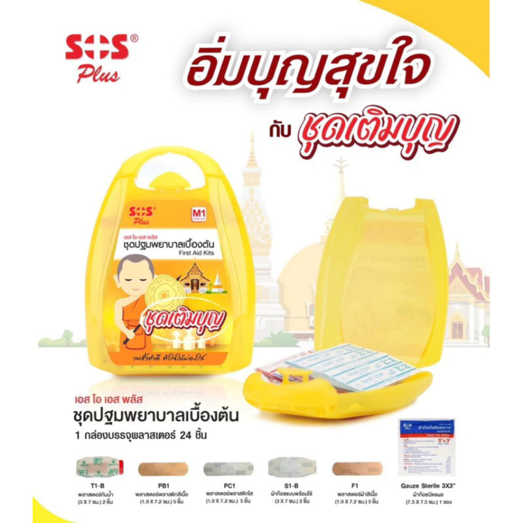 SOS PLUS FIRST AID KITS #M1 ชุดพลาสเตอร์ เติมบุญ ชุดปฐมพยาบาลเบื้องต้น ขนาดพกพา #12275