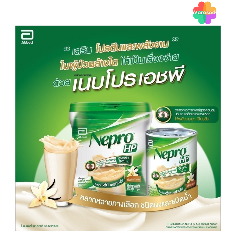 (ชนิดผง) Nepro HP เนบโปร เอชพี กลิ่นวานิลลา 400g 1 กล่อง Nepro HP Vanilla 400g x1 ผู้ป่วยล้างไต