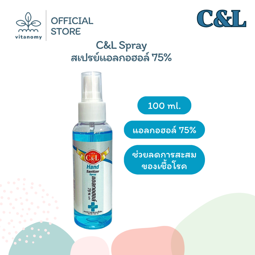 C&L Hand Sanitizer Spray สเปรย์แอลกอฮอล์ 75% ชุ่มชื้นไม่ทำให้ผิวแห้ง | 100ml