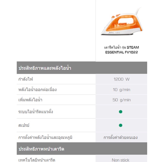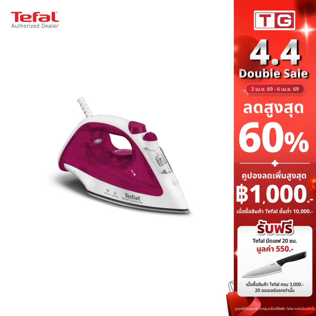 TEFAL เตารีดไอน้ำ หน้าเตาเคลือบไม่ติดผ้า รุ่น FV1022 สีส้ม 1200 วัตต์ / รุ่นใหม่ ปี2023 รุ่น FV1053 รับประกันศูนย์ 2ปี