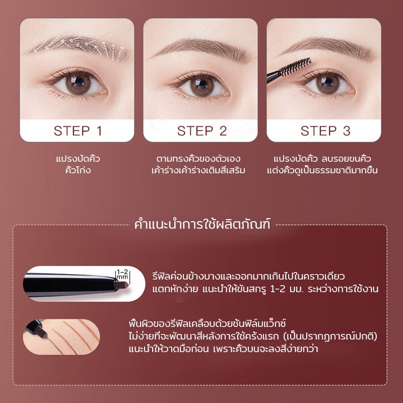 ดินสอเขียนคิ้ว ดินสอเขียนคิ้ว แบบหมุนออโต้ กันน้ำ พร้อมแปรงปัดขนคิ้ว มีให้เลือก 5 สี เครื่องสําอางสําหรับผู้หญิง(048)